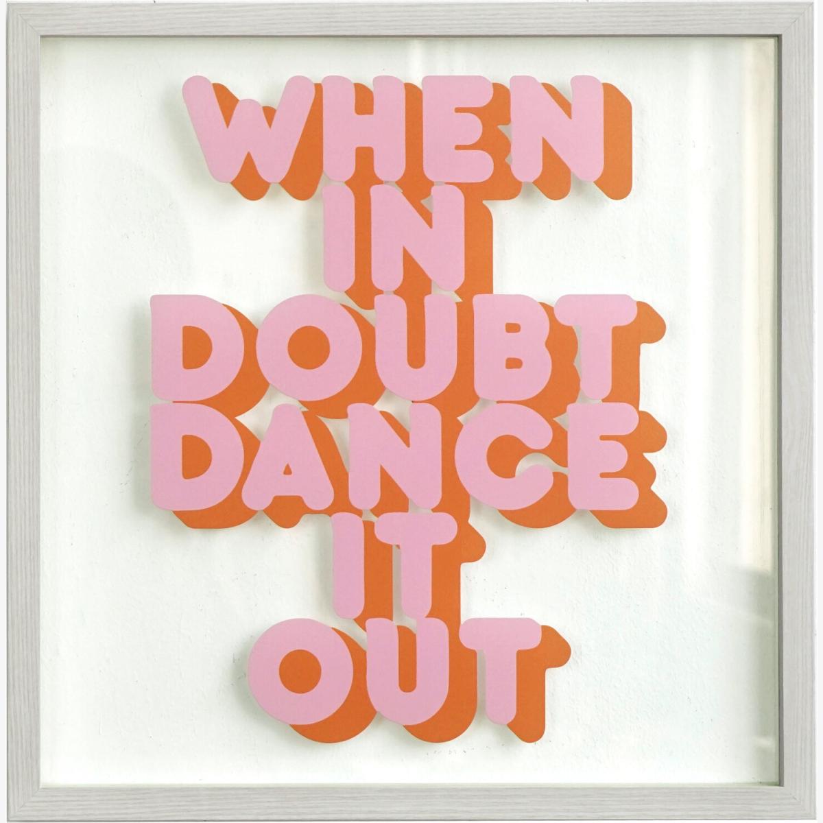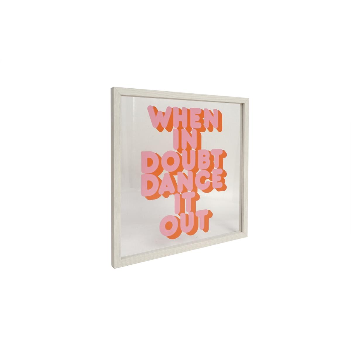 The When in Doubt Bright Glass Plaque is perfect for any home. It has a sleek glass design printed with 'When in doubt, dance it out' in a modern pink and orange text. The artwork is finished with a white frame for a coordinated look and is quick and easy to hang via the hooks on the back. It's the ideal, uplifting piece for the living room, hallway, or bedroom.