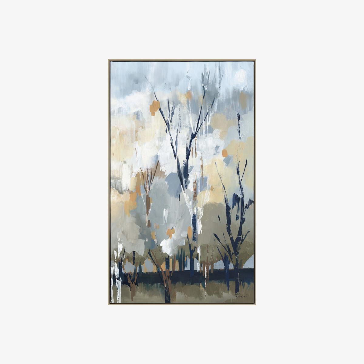 This contemporary piece features slabs of muted grey, blue and rust detailing to portray a majestic forest scene. Whether you're a nature enthusiast or someone seeking to infuse your space with a statement piece.