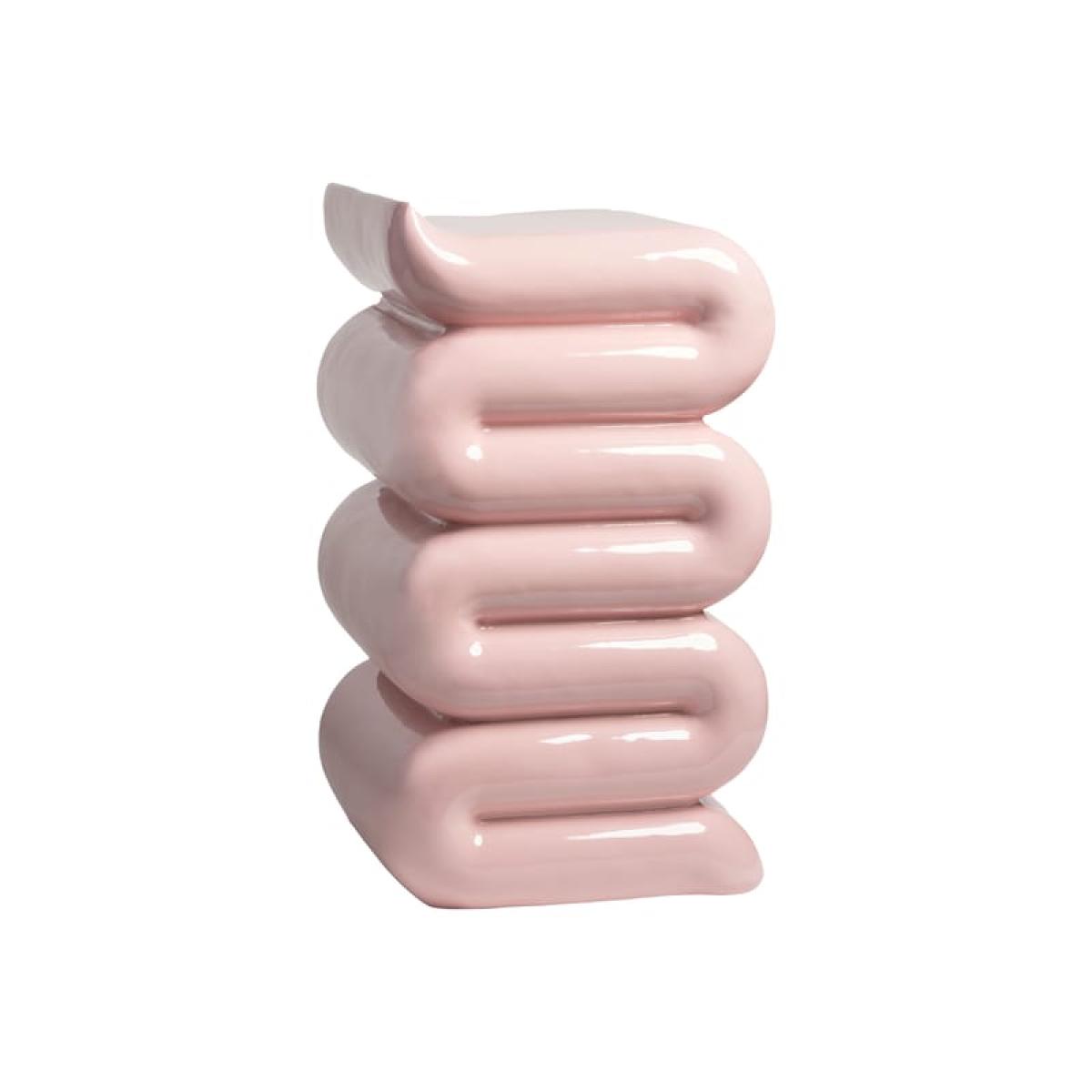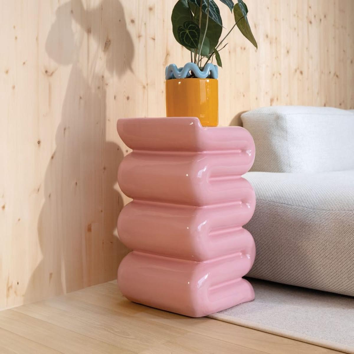 A sculptural, ultra-glossy End tableWith its marshmallow-like twisted curves and ultra-glossy finish, the Whip side table is an instant eye-catcher. Its sculptural design and smooth, tactile feel play with light, adding a bold touch to your interior. Decorative objects with eccentric pop energyMade from lacquered fibreglass, it boasts a glossy, vibrant, almost gourmand look. Arty and playful, it evokes both the sweetness of a confection and the extravagance of contemporary sculptural pieces. A strong visual statementOn its own or mixed with other colors and shapes, the Whip table becomes the centerpiece of your decor. Its hypnotic allure and incomparable brilliance make it a true collector's item, designed for bold design enthusiasts. In detail: Variation : Pink Brand : & klevering Type : End table Colour : Pink Material : Fibreglass, lacquered finish Dimensions : 34 x 34 x H 62 cm Weight : 8.8 lb Characteristics :Max. weight supported: 3.5 kg Show less