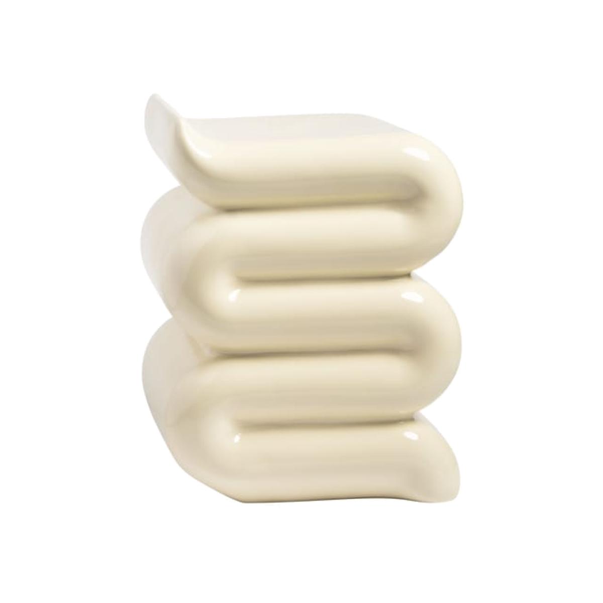 A sculptural, ultra-glossy End tableWith its marshmallow-like twisted curves and ultra-glossy finish, the Whip side table is an instant eye-catcher. Its sculptural design and smooth, tactile feel play with light, adding a bold touch to your interior. Decorative objects with eccentric pop energyMade from lacquered fibreglass, it boasts a glossy, vibrant, almost gourmand look. Arty and playful, it evokes both the sweetness of a confection and the extravagance of contemporary sculptural pieces. A strong visual statementOn its own or mixed with other colors and shapes, the Whip table becomes the centerpiece of your decor. Its hypnotic allure and incomparable brilliance make it a true collector's item, designed for bold design enthusiasts. In detail: Variation : Ecru Brand : & klevering Type : End table Colour : Ecru Material : Fibreglass, lacquered finish Dimensions : 34 x 34 x H 46 cm Weight : 11 lb Characteristics : Max. weight supported: 3.5 kg Show less
