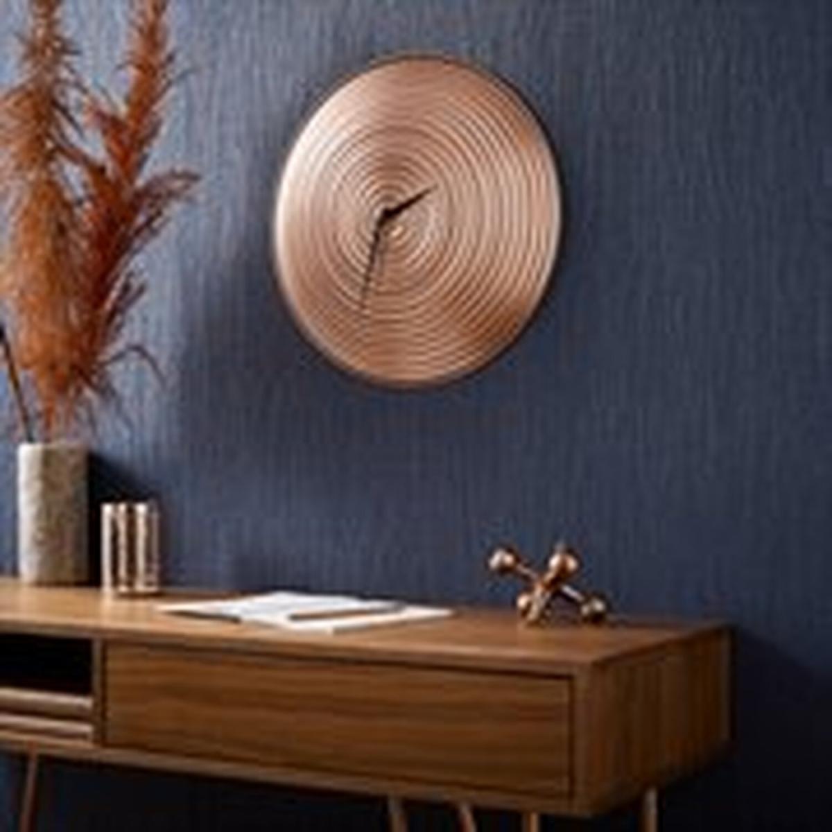 Bring a contemporary feel to your walls with the whirl clock. Created in a stunning rose gold finish this eye-catching yet understated metal clock has a domed effect when placed upon the wall and features a subtle geometric style for a stylish yet practical wall clock.