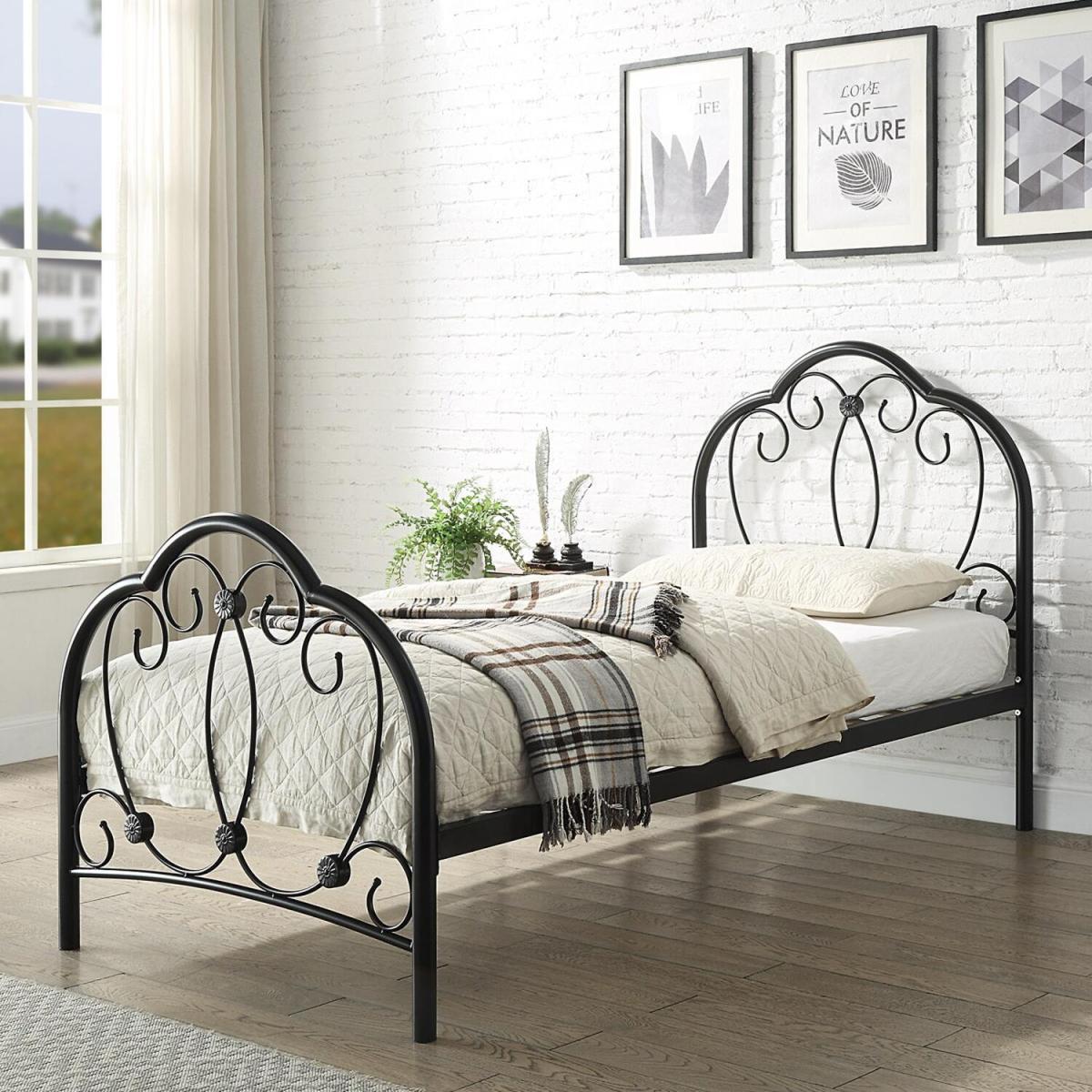 Whitby Vintage Style Black Metal Bed Frame - Black / Single