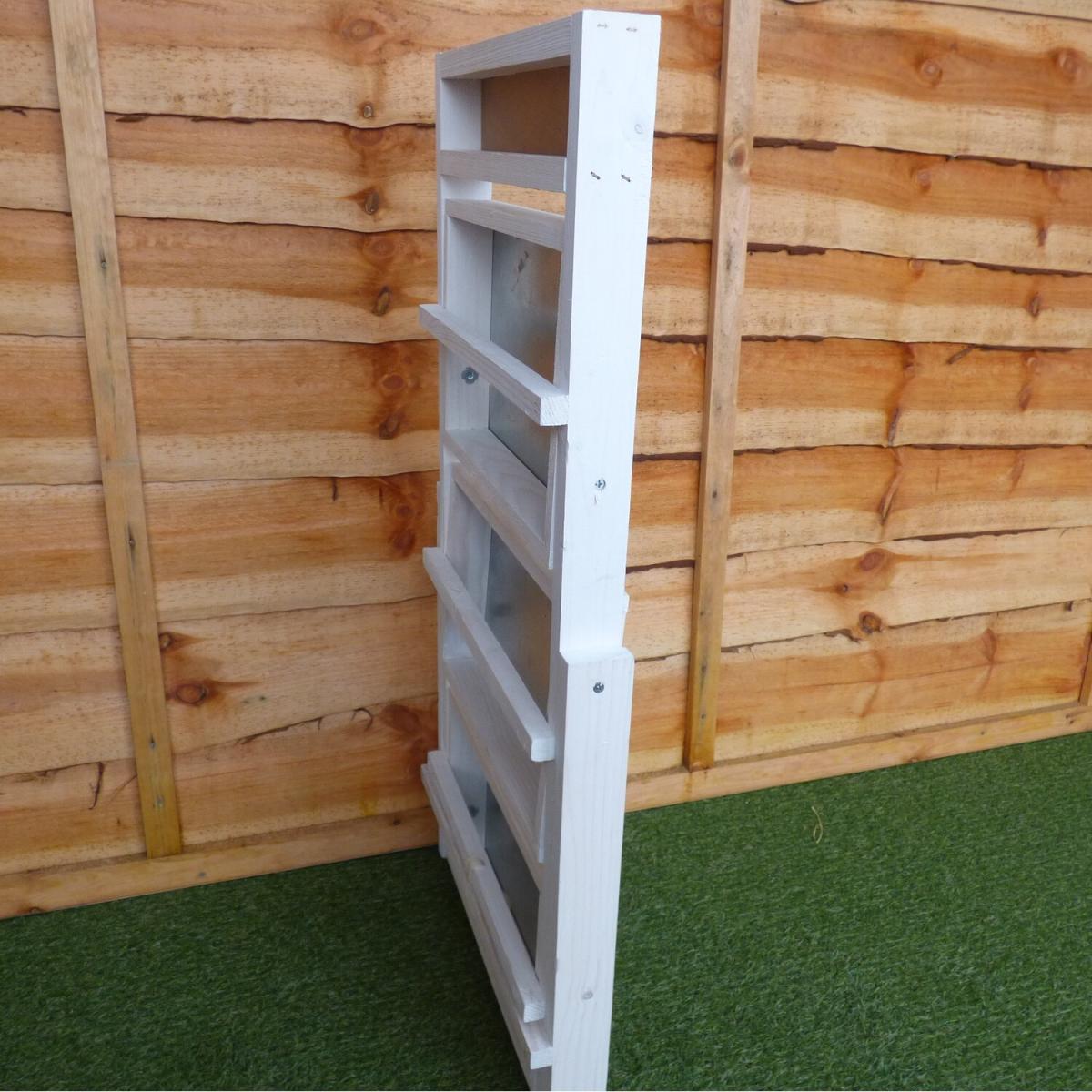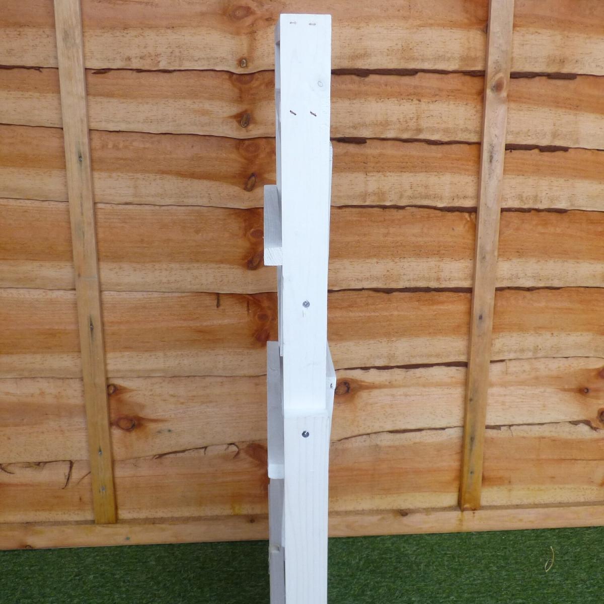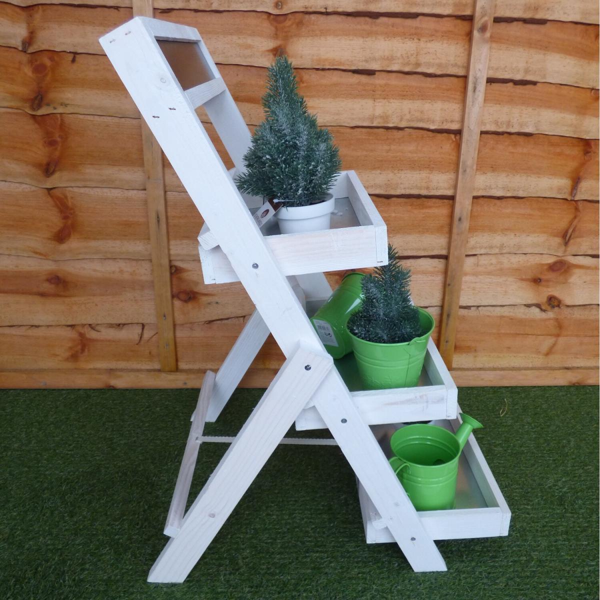 This natural whitewashed pinewood etagere is a durable and multifunctional storage solution. Suitable for both indoor and outdoor use, this 3-tier unit is ideal for displaying pots and plants, books and many other decorative ornaments around the home, patio or garden. Its easy folding frame makes the shelving unit easy to assemble, and quick and simple to store away when not in use. When opened out, the unit measures 69cm in height, 52cm in depth and 39cm in width at the widest and tallest points. Folding nice and compact to approximately L35.5cm x H78cm x D6cm. Featuring 3 shelves which individually fold away enabling you to display the unit in a variety of positions. Each shelf tray has an internal measurement of L29cm x W17.5cm x H4cm approximately an ideal size for smaller decorative ornaments and pots. Perfect for herbs! As well as use around the home, the unit also adds a classy touch to display memos, sweets, cakes and other flavours at a wedding, birthday, baby shower, Christening and other special occasions. (Plants and accessories not included) - For illustration purposes only.