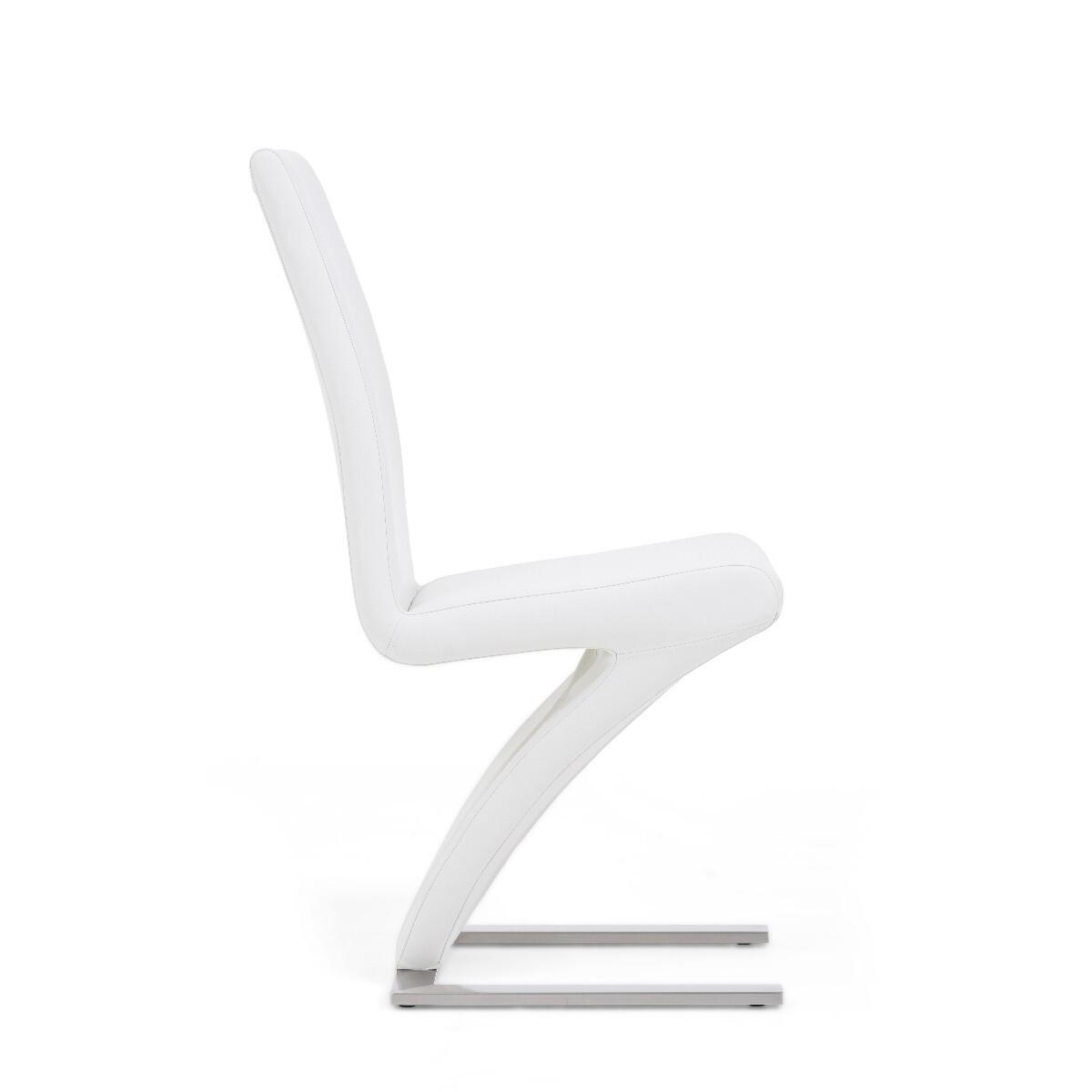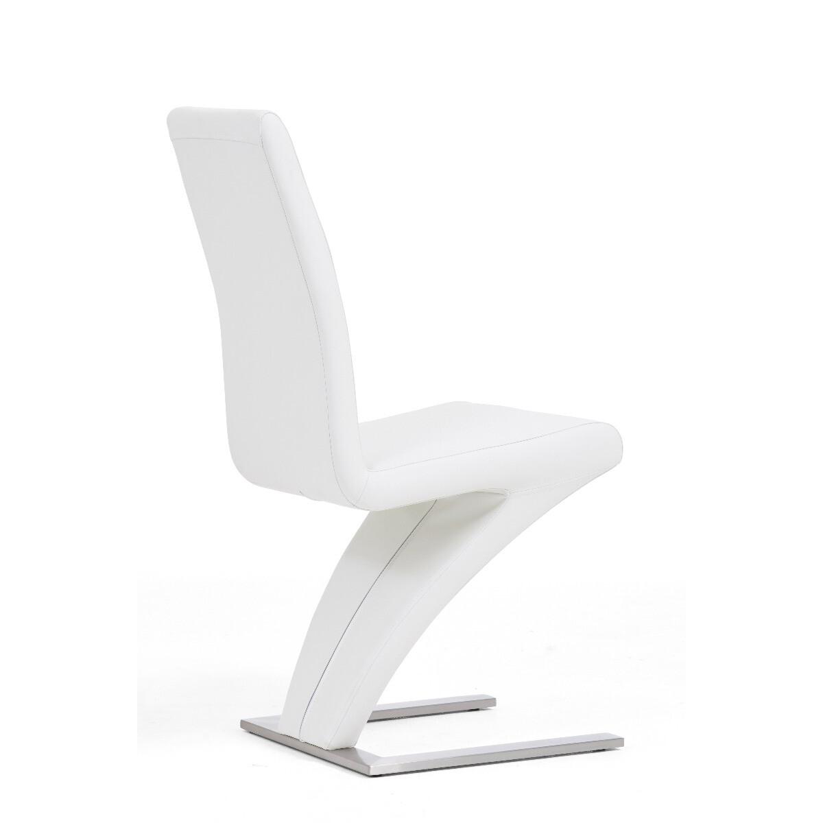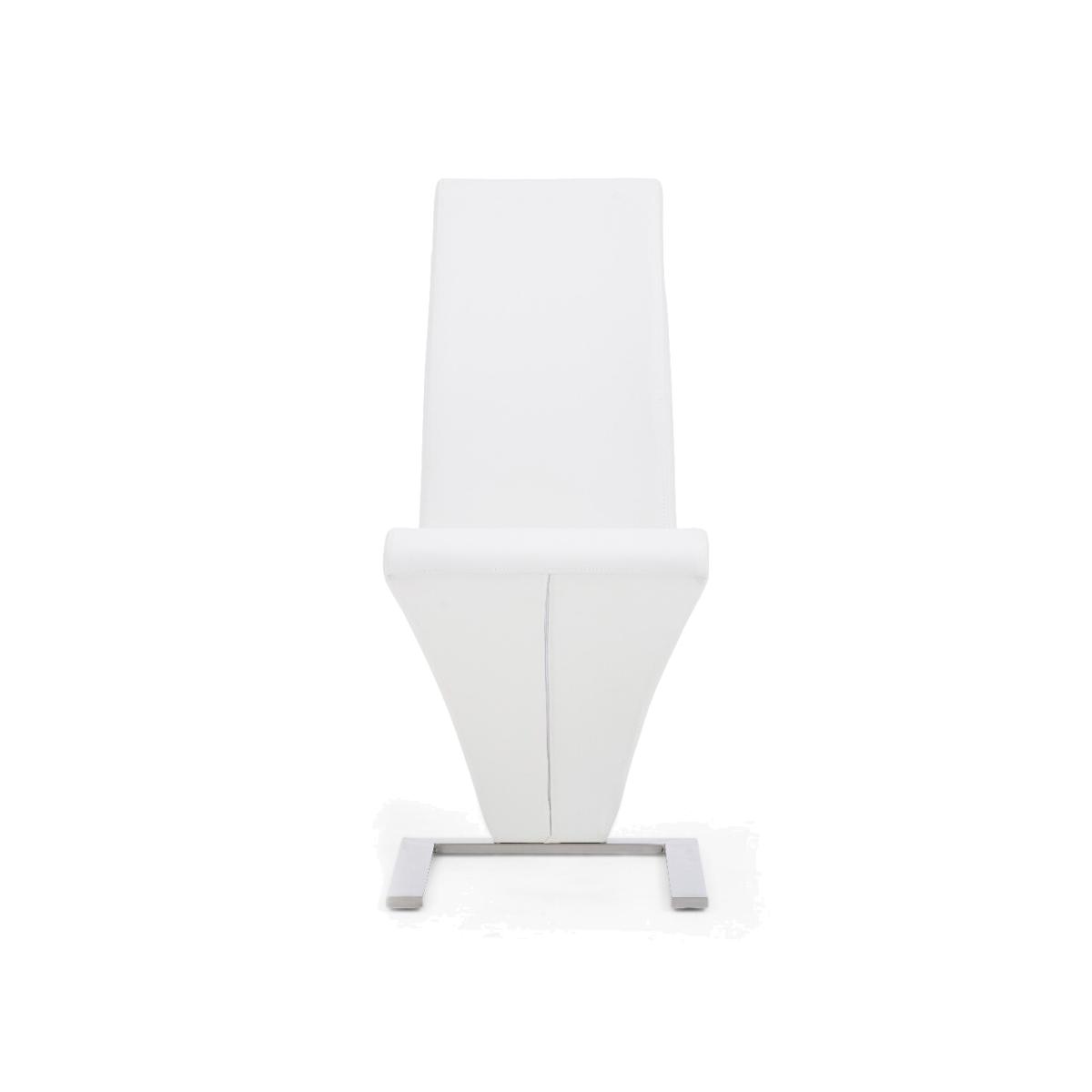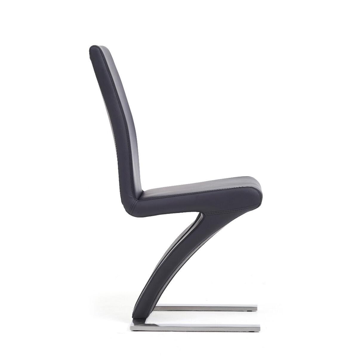 The Aldo Faux Leather Dining Chairs feature a unique Z design, smooth faux leather and brushed metal feet.