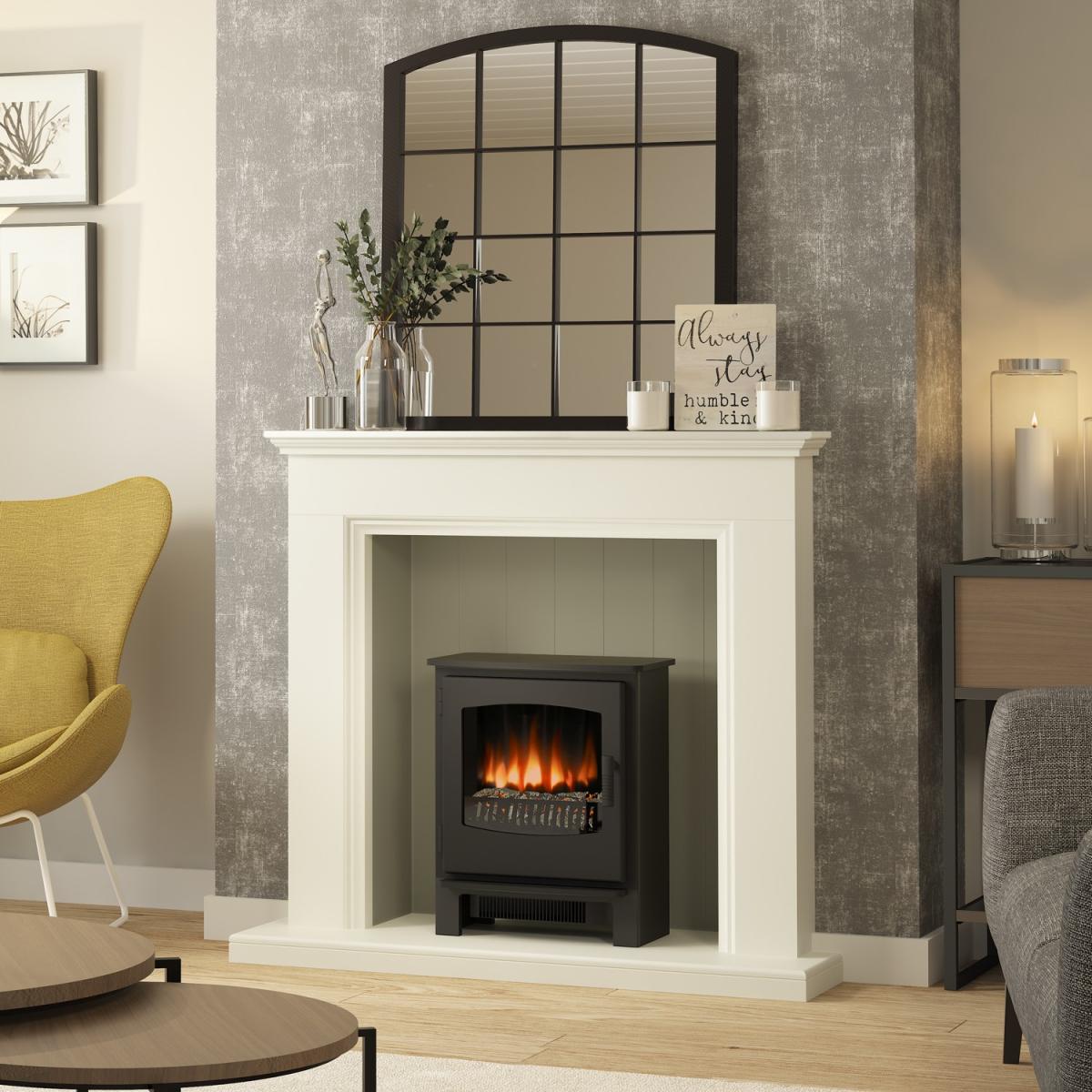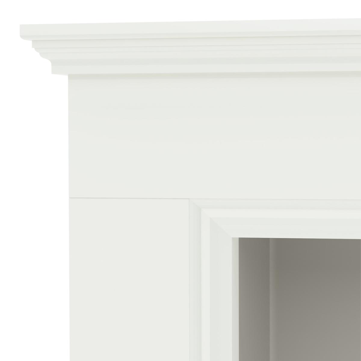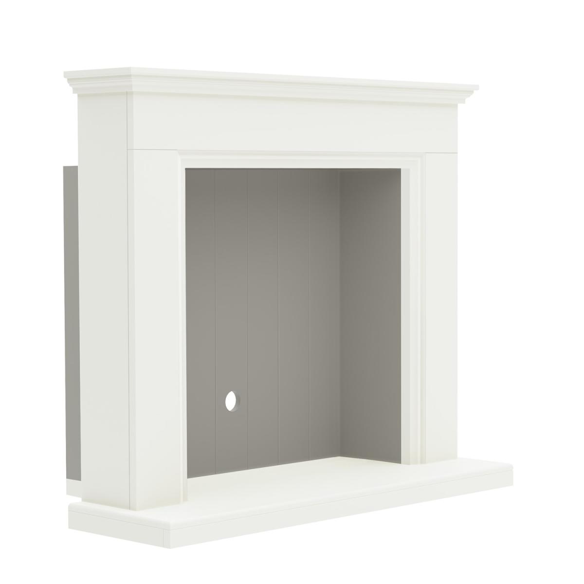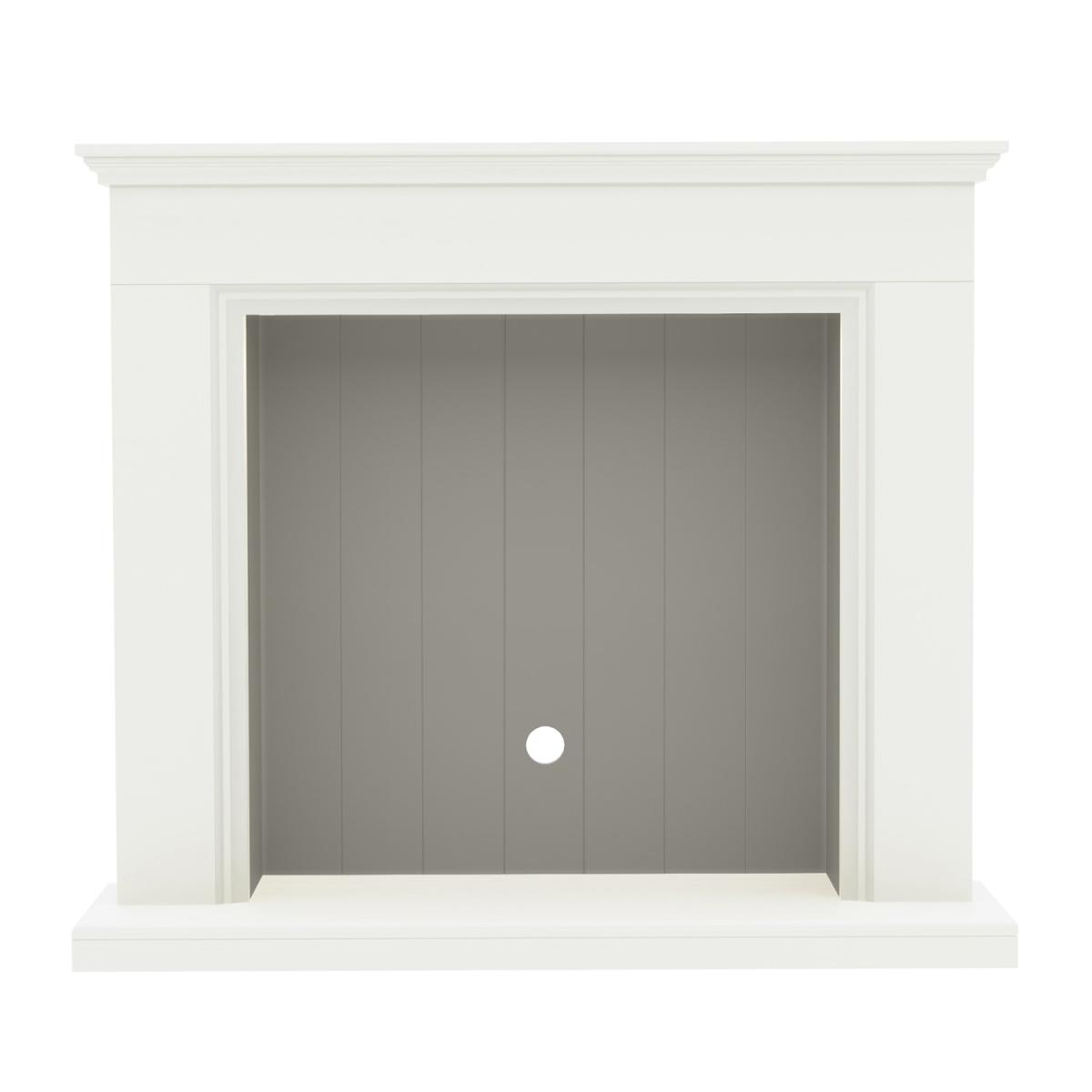 Dimensions H106.9cm x W112cm x D36cm. The 48’’ Bainbridge inglenook suite has a stunning painted soft white timber finish. Featuring under mantel lights with a contrasting grey back panel. Its design is the perfect balance between traditional and modern with LED mood lighting to enhance the ambience in any interior. Features. 48 Timber mantel. Under mantel lighting. Flat 2 wall installationSoft White Main Body and Grey Chamber. Choose your own electric stove. Assembly required..