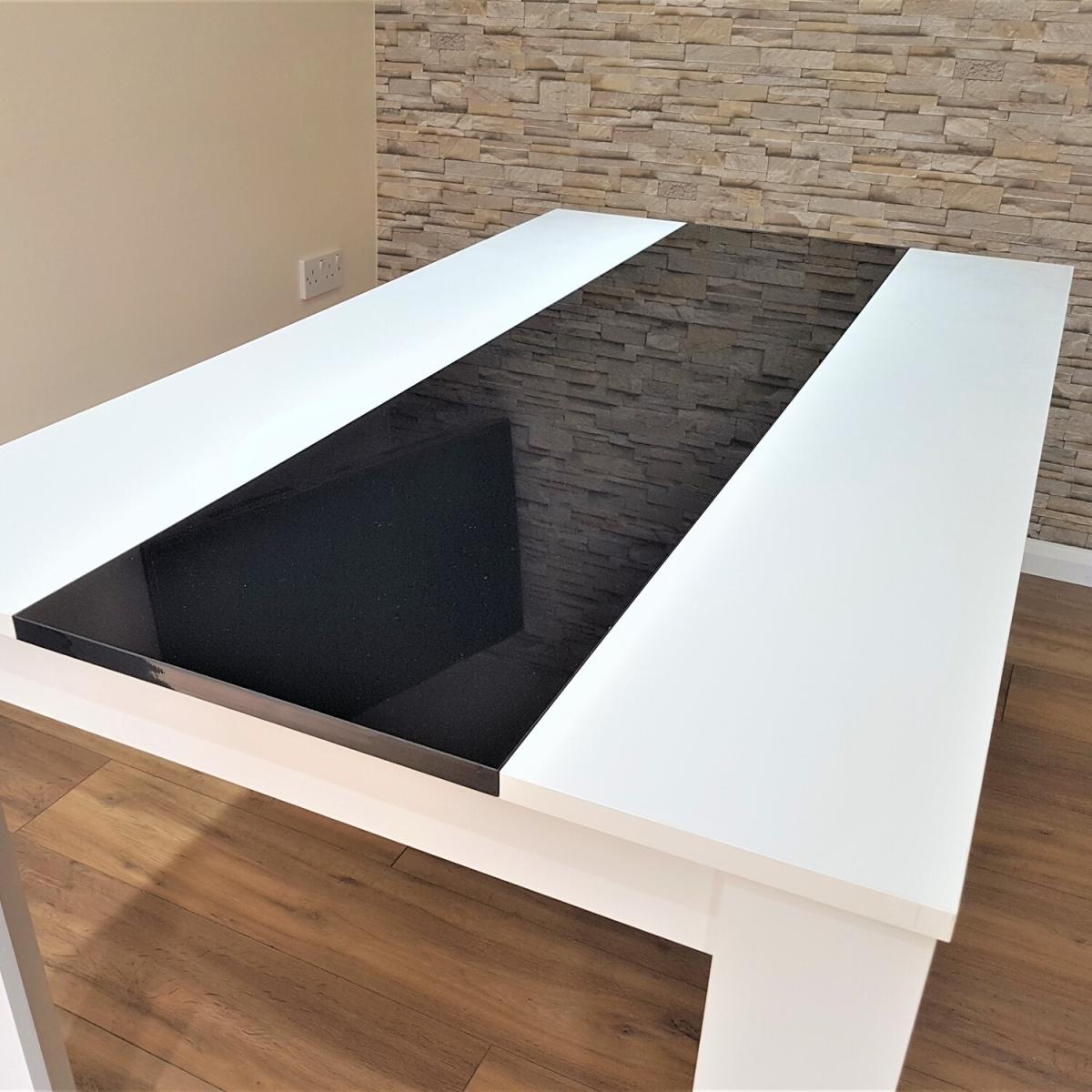Kosy Koala Wood High Glossy Dining Table is beautifully designed has a stunning black stripe in the centre in a gloss finish. Stunning and classic white and black wood dining table with a glossy finish. The high gloss dining table surface gives a modern edge to the timeless design and the round corner design ensure it safe enough for your family. It is suitable for the dining room, living room, lounge, or other rooms as a dining table, computer desk table, meeting table and so on.