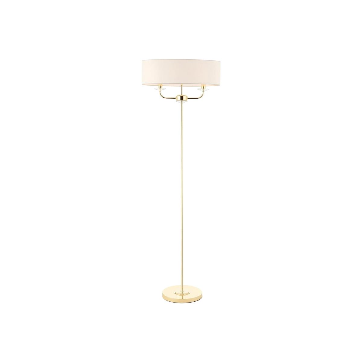 Dimensions W52 x H157 x D15 cm. The Nixon floor light finished in brass is completed by a vintage white silk shade and crystal glass detailing. Features. Constructed from steel crystal glass and fabric Brass plate and vintage white silk shade. Inline foot switch supplied. Matching items availableLE D compatible Modern design Assembly required..