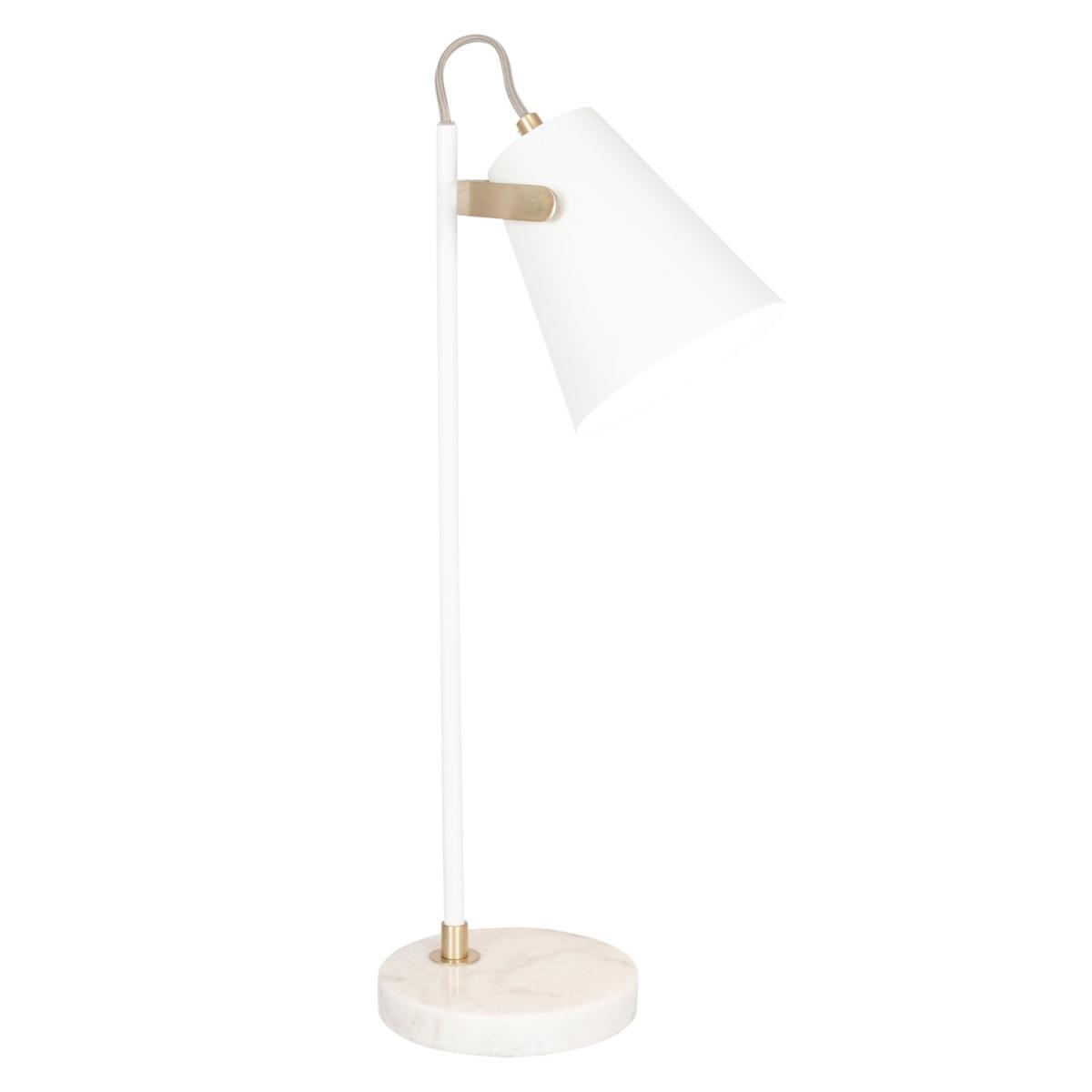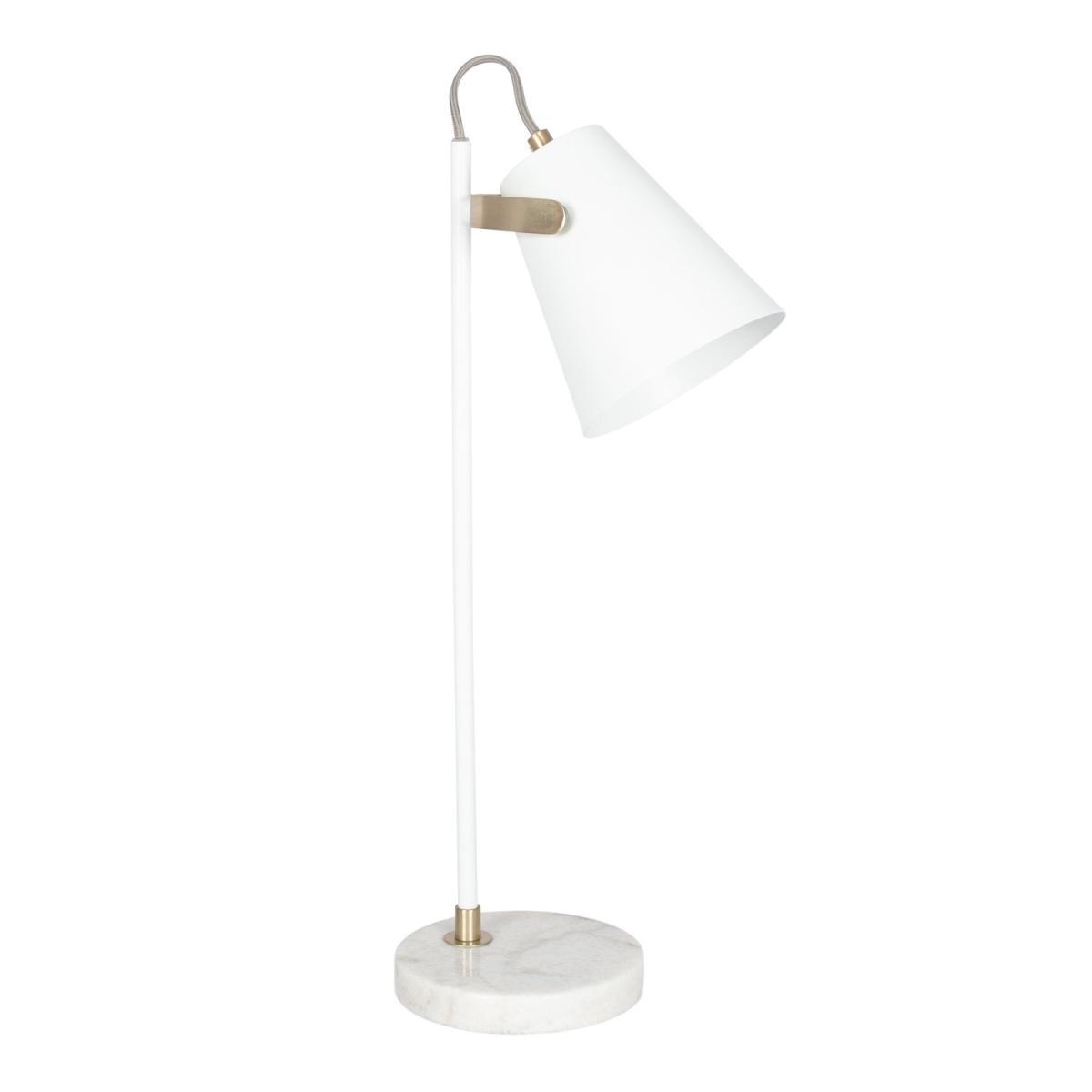 Stylish and simple and finished in cream and brushed brass this table lamp has a white marble base detail for a beautiful contract. Multi directional this lamps' light source can be pinpointed to where you need it most. p>