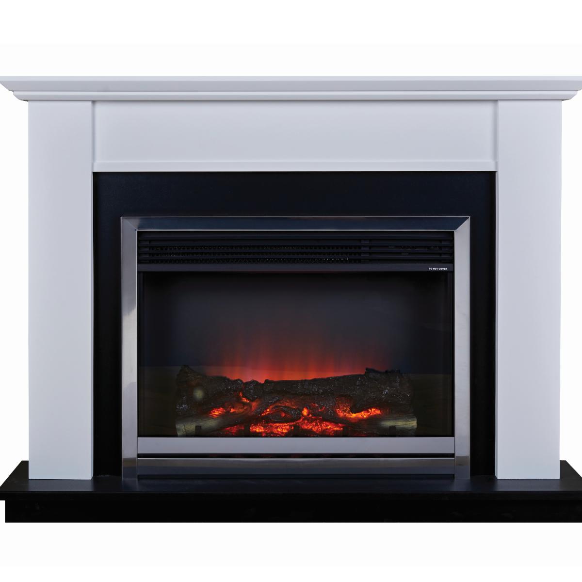 White and Chrome Freestanding Fireplace Suite - Suncrest Antigua