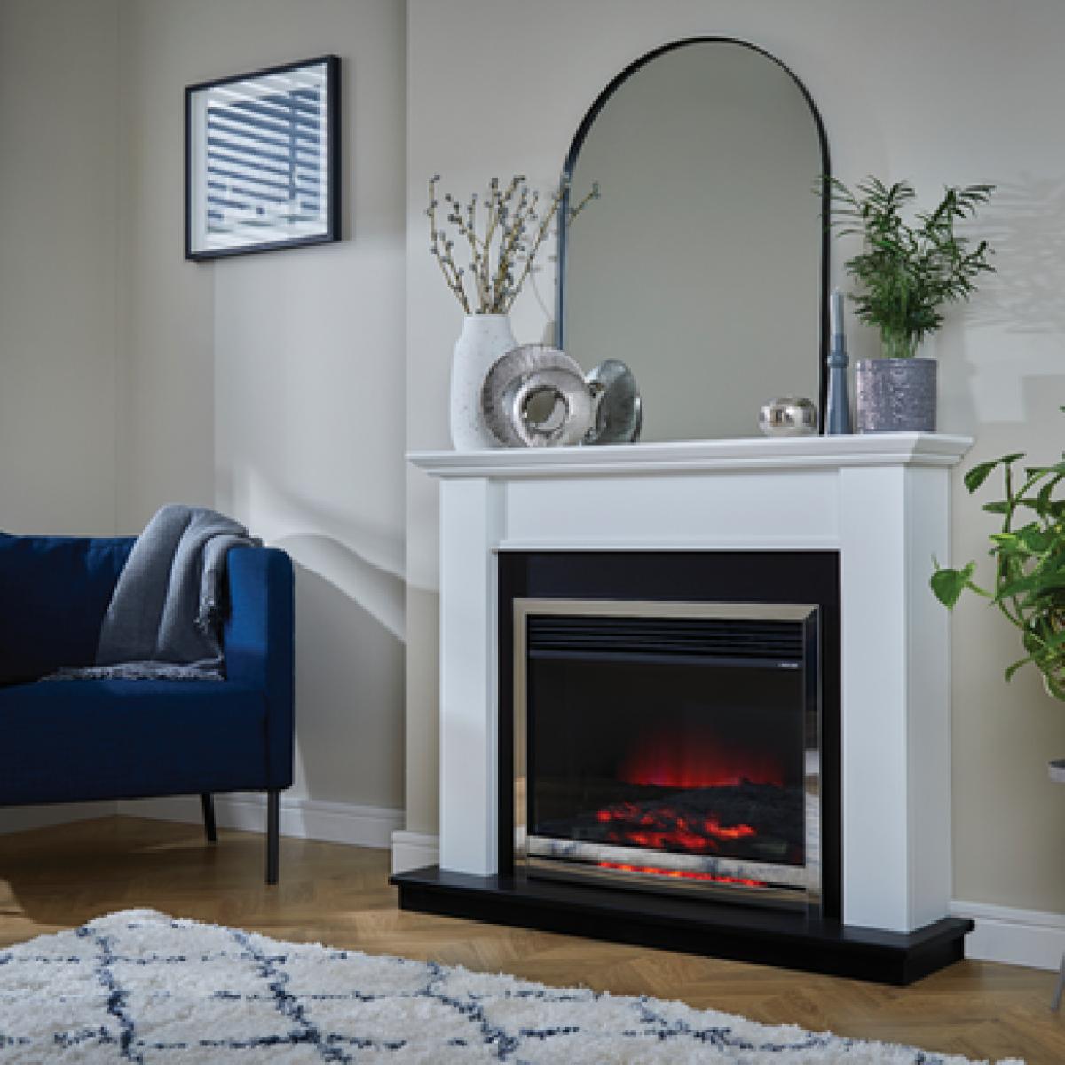 The white and chrome freestanding fire suite offers a sleek, modern centrepiece that complements contemporary and minimal interiors effortlessly. I love how its clean lines and reflective surfaces bring a touch of sophistication without feeling overstated, making it versatile for open-plan living or more compact spaces. To style around it, consider pairing with neutral tones for a calm, cohesive look, or add bold accessories for contrast. Practical tip: position it near a cosy seating area to maximise the inviting warmth and visual impact, and ensure the chrome accents are complemented with other metallic touches or glass for a unified aesthetic. It’s a practical yet stylish choice that works well in both relaxed and elegant settings.