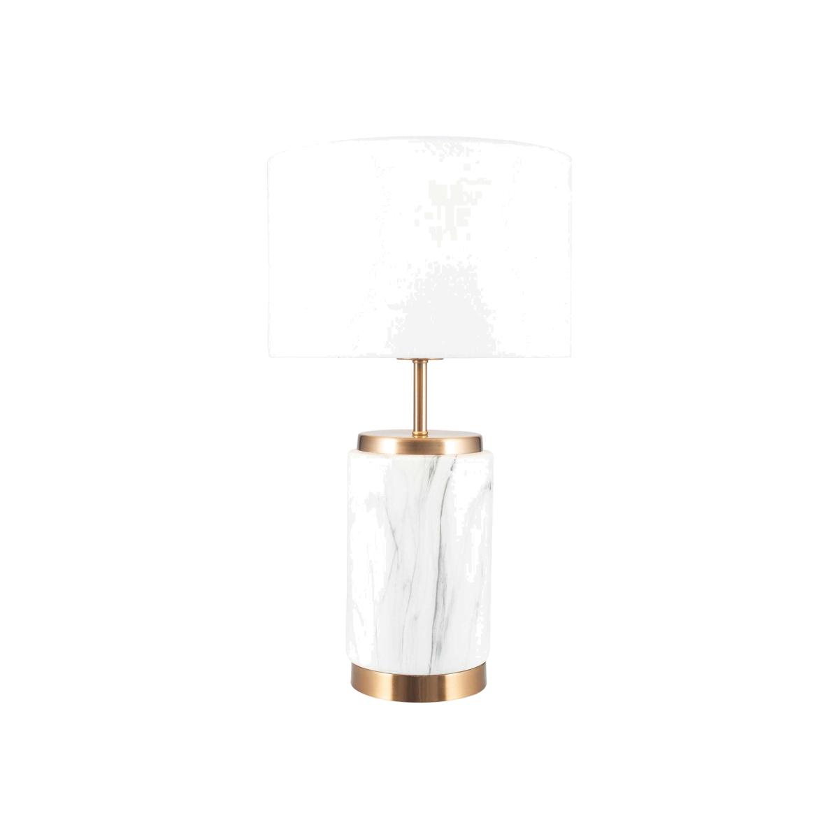 Design. Bringing a fresh and elegant look to the modern home, the White and Gold Marble Effect Ceramic Table Lamp features a stunning white base with gold accents, topped off with a white lamp shade. Clean lines lend a contemporary touch to the classical nature of marble, so the lamp can be dressed up or down to suit your space. Surround with metallic accessories and sumptuous textures for a decadent finish, or let it sit proudly on an uncluttered side table andallow its beauty to really shine.