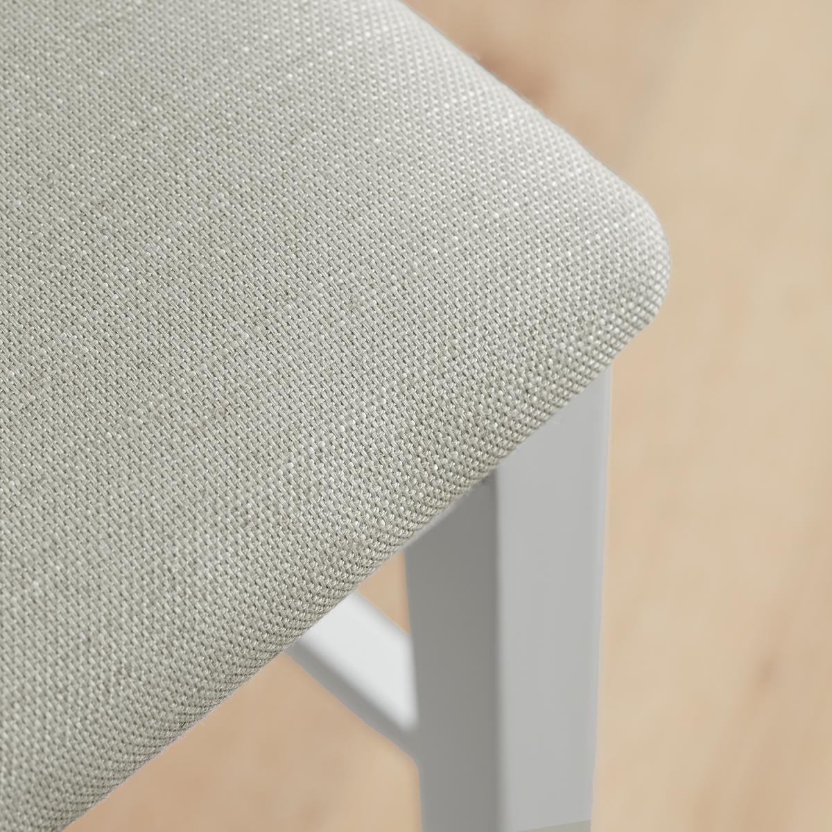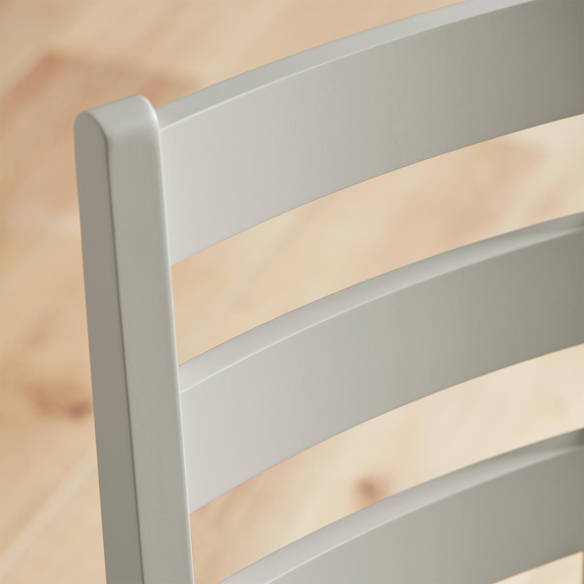 The renewed. White and Grey. Dining chairs boast looks, durability and contemporary touches. These painted dining chairs offer a timeless ladder back styled high rise frame, supportive and enduring. We’ve sourced our production from sustainable timber only and it’s all completed in a generations’ owned eco-factory in Northern Italy. The beautiful oak-finished hardwood of these white dining chairs is extremely durable for a life spent supporting breakfasts, lunch, dinner and more. These painted dining chairs have been given layers of a true-white coat, completely matching the dining range. We’ve chosen an attractive and long lasting hessian fabric grey tone cushion, with a plump inner, for those evenings spent hosting where the time slips by all too easily. Also available in a. Chevron back design.