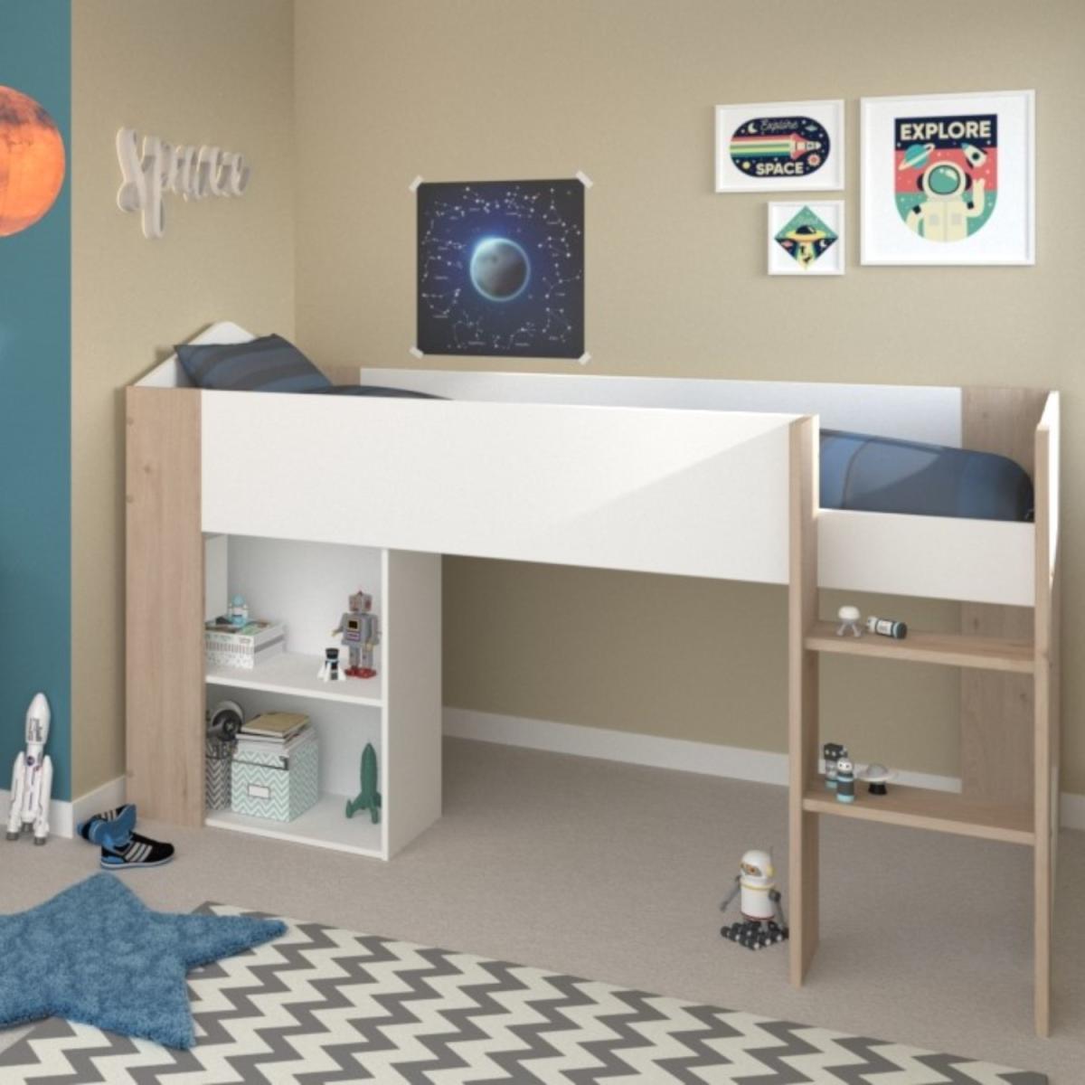White and Oak Mid Sleeper Cabin Bed with Storage - Shelter - Kids Avenue