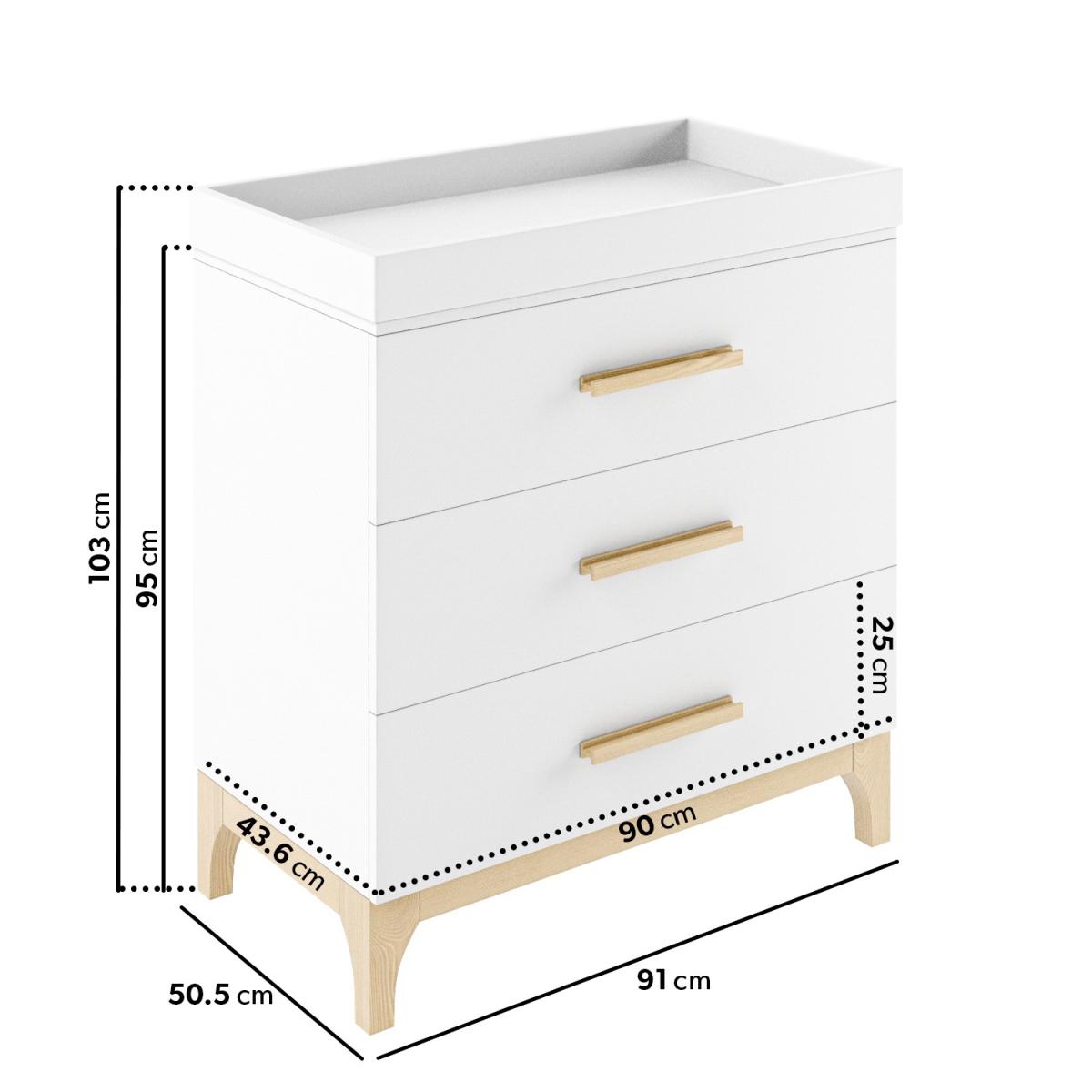 I love this White and Pine changing table for its versatile, modern look that balances clean lines with warm touches of natural wood. It works particularly well in Scandi or minimalist nurseries, but also adapts easily to more eclectic interiors by adding colourful or patterned accessories. Practical styling tips include placing soft, easy-to-reach storage baskets in the drawers to keep changing essentials tidy, and complementing it with natural textiles like cotton or linen for a cosy feel. Its subtle pine accents add warmth without overpowering, making it a timeless piece that transitions well as your little one grows.