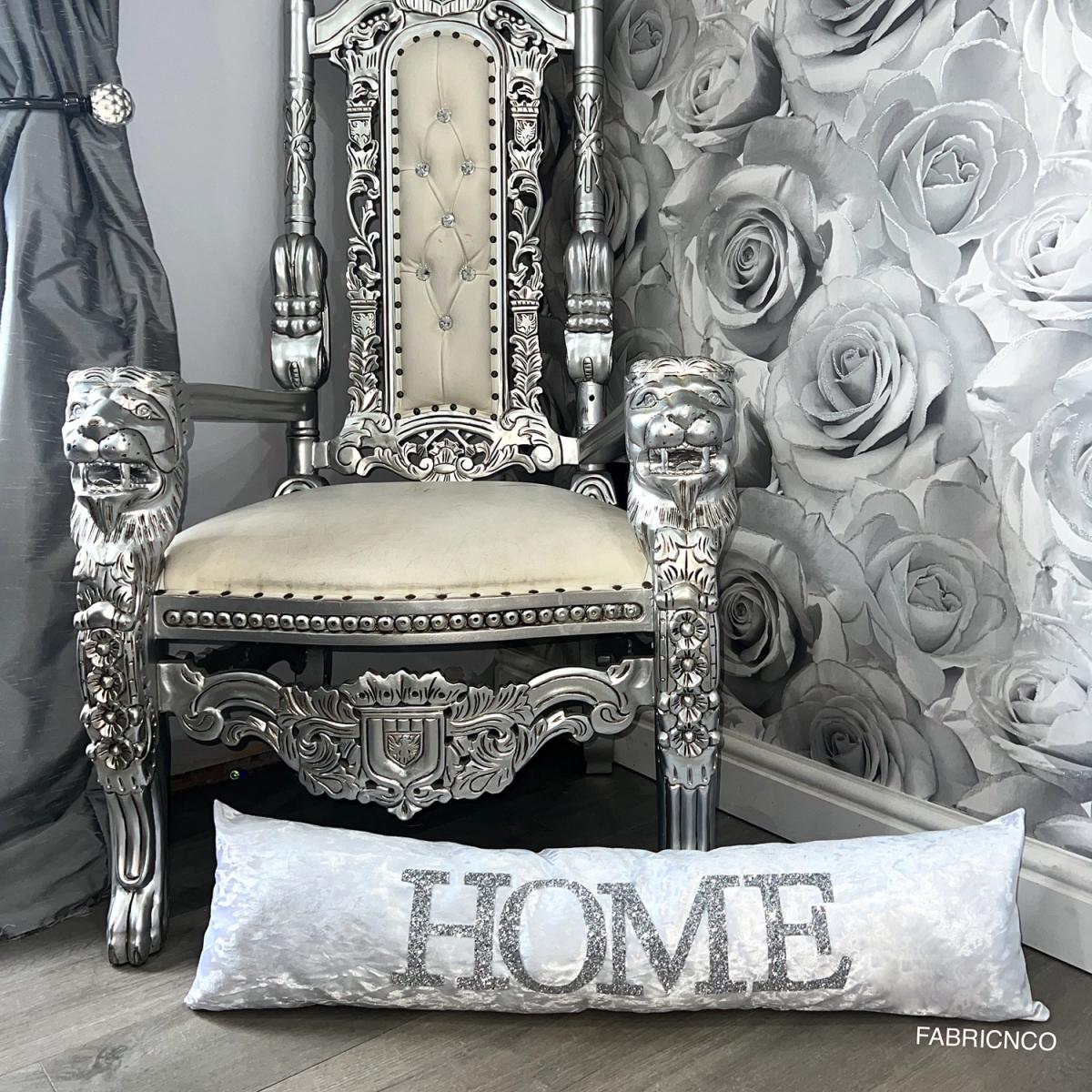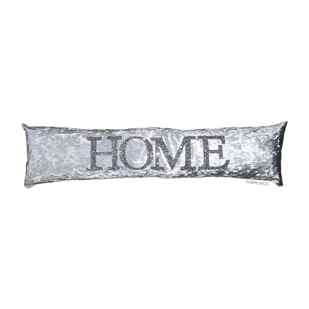 Crushed velvet and glitter HOME draught excluder. Above is one of our stunning draught excluders with HOME written across to make it more glam. These are handmade to the highest standard with the thickest, most luxurious best quality fabric. Each item is handcrafted to perfection with not a single fault. Helping to keep the chill out of your home through the frosty winter months, this draught excluder will also bring some glam to your room and its colour is perfect for a variety of decor schemes. These gleam from every angle and make the perfect stand-out piece for your home.