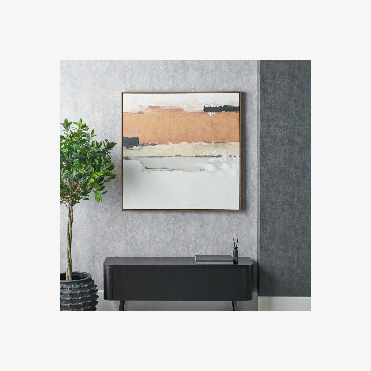 I love this piece for its versatility and understated elegance. The neutral tones and abstract design make it a great fit for both modern and contemporary interiors, especially those with a colour palette of whites, beiges, or greys. It works particularly well above a console table, sideboard, or even in a minimalist living room to add visual interest without overwhelming the space. For styling tips, consider pairing it with natural textures like wood or rattan to emphasise the oak effect, or keep surrounding decor simple to let the artwork be the focal point. This is a smart choice for adding a touch of warmth and artistry to any neutral or muted interior.