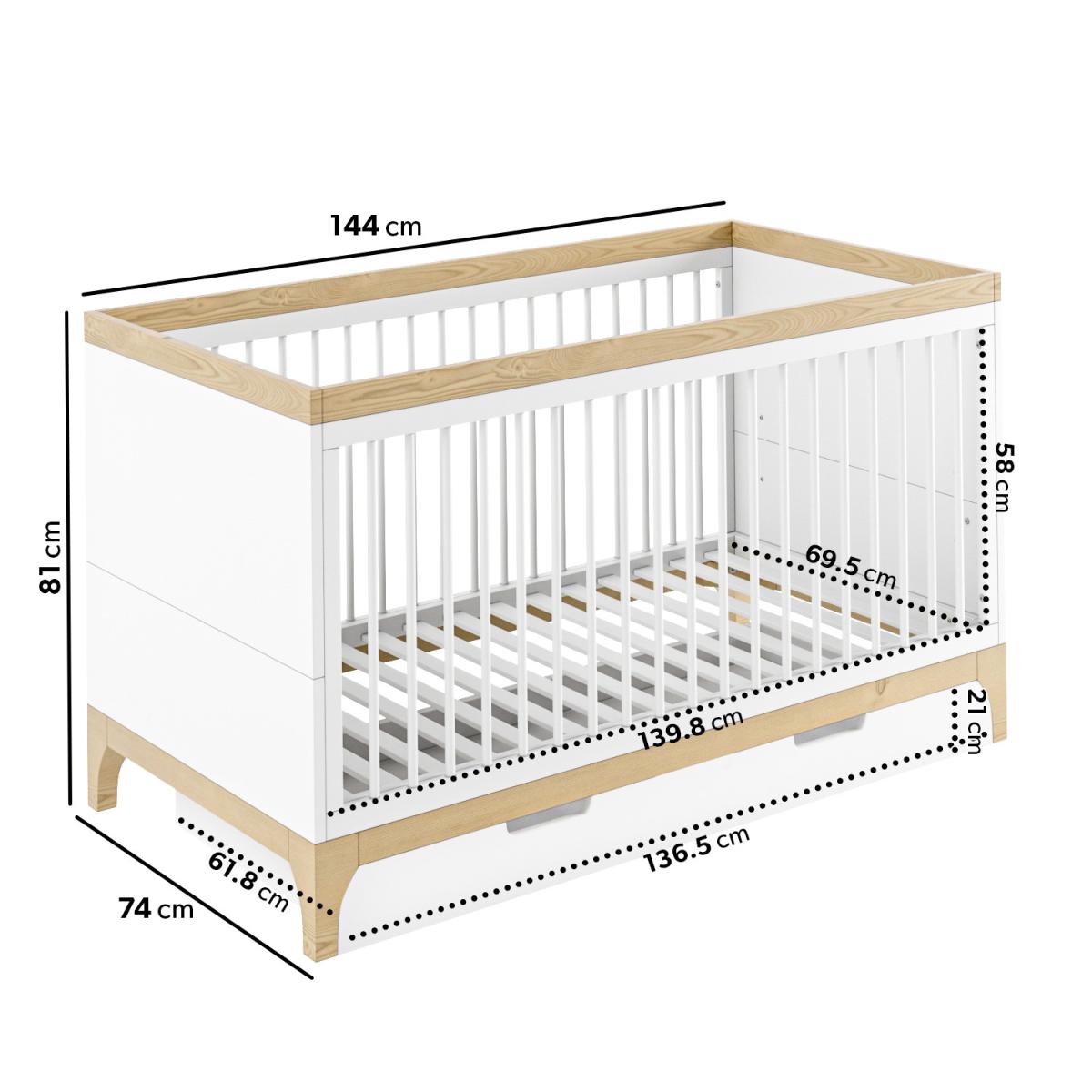All-in-one bundle includes a cot that grows with your baby, a space-saving changing unit, and a high-quality mattress for a comfortable sleep. The cot features an adjustable base to reduce back strain and easily converts into a toddler bed offering long-term value. Three adjustable base heights make lifting your baby in and out easy, while a built-in storage drawer keeps essentials organised. The Sleepful fibre mattress offers firm, breathable, and hypoallergenic support, keeping your baby safe and comfortable. Water-resistant and abrasion-resistant mattress is built to last, while the cot and changer meet the highest British safety standards, ensuring peace of mind for parents. Create a cosy nursery for your little one with the Rue cot bed paired with Sleepful hypoallergenic, fully breathable, firm and comfortable fibre mattress. The cot bed features a storage drawer and teething rails. It has 3 adjustable cot base heights, enabling you to lift baby in and out with ease. It's suitable from birth and the 2-in-1 design converts into a toddler bed to last until approximately four years old and will even fit a standard bed guard. The Sleepful fibre cot mattress is hypoallergenic, breathable, firm and comfortable. It has an Eco-fibre core that cradles the baby in cloudlike comfort while providing the recommended level of firmness for safe sleep. The softly quilted fabric is fully breathable and encourages natural airflow to help maintain a comfortable sleeping climate for baby. Water-resistant, durable and abrasion-resistant for extra-long life use. All Sleepful nursery mattresses are made for safer sleep, and tested to the highest British Standards for flammability (BS 7177:2008+A1:2011), performance and safety (BS EN 16890).