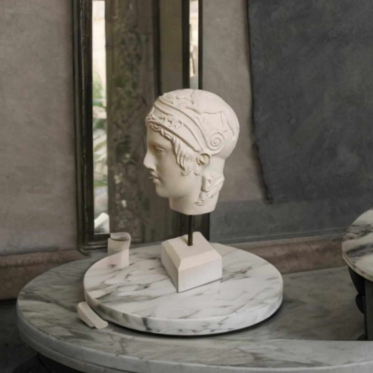 I love the White Ares sculpture for its bold yet classical presence. Its crisp white finish makes it highly versatile, fitting well into both modern and traditional interiors. It works particularly well as a statement piece on a console table or a mantelpiece, where it can be a focal point without overwhelming the space. For practical styling, consider pairing it with minimalistic surrounding decor to allow its sculptural details to stand out, or place it amidst greenery or contemporary art for a dynamic contrast. This sculpture can serve as a powerful anchor in a neutral colour palette or add a touch of mythic grandeur to a curated shelf or entrance hall.