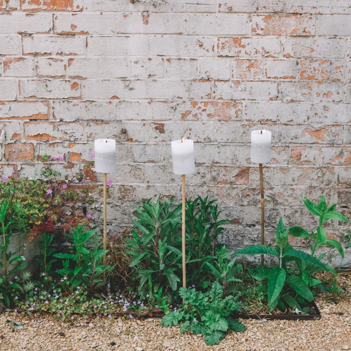 Light your alfresco parties with this white bamboo candle. Set upon a bamboo stand that can be dug into the ground, our chunky church candle is an attractive decoration for a garden during the summer evenings.