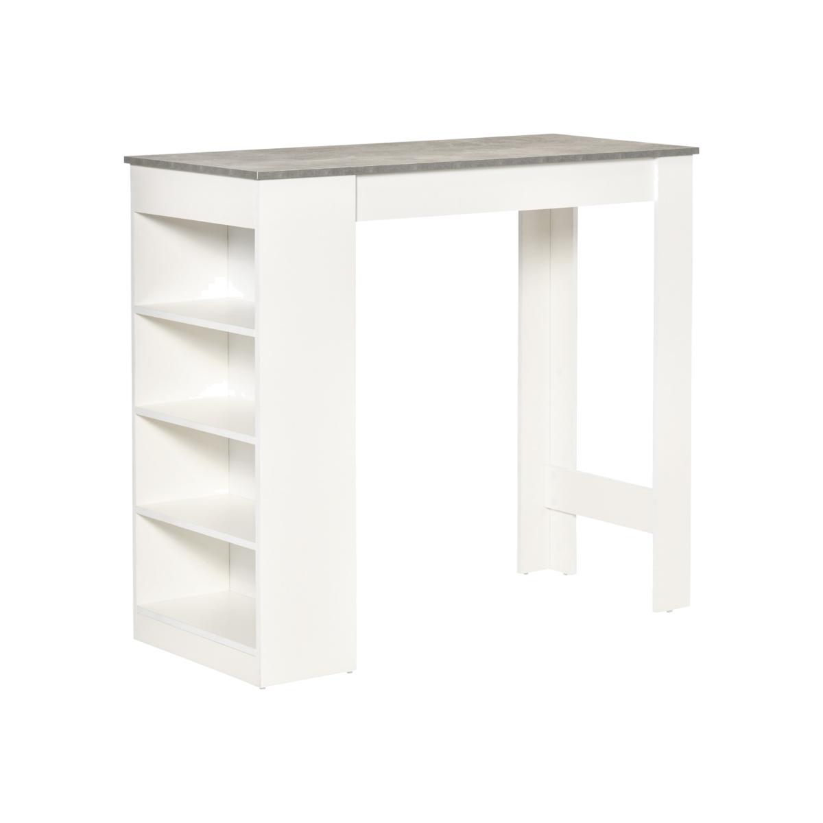 Add this modern bar table to your home for the perfect place to eat, drink or socialise while adding some storage space to your home with the shelving unit to the side of the table. Pair with your favourite bar stools and create an ambient place to relax with friends.