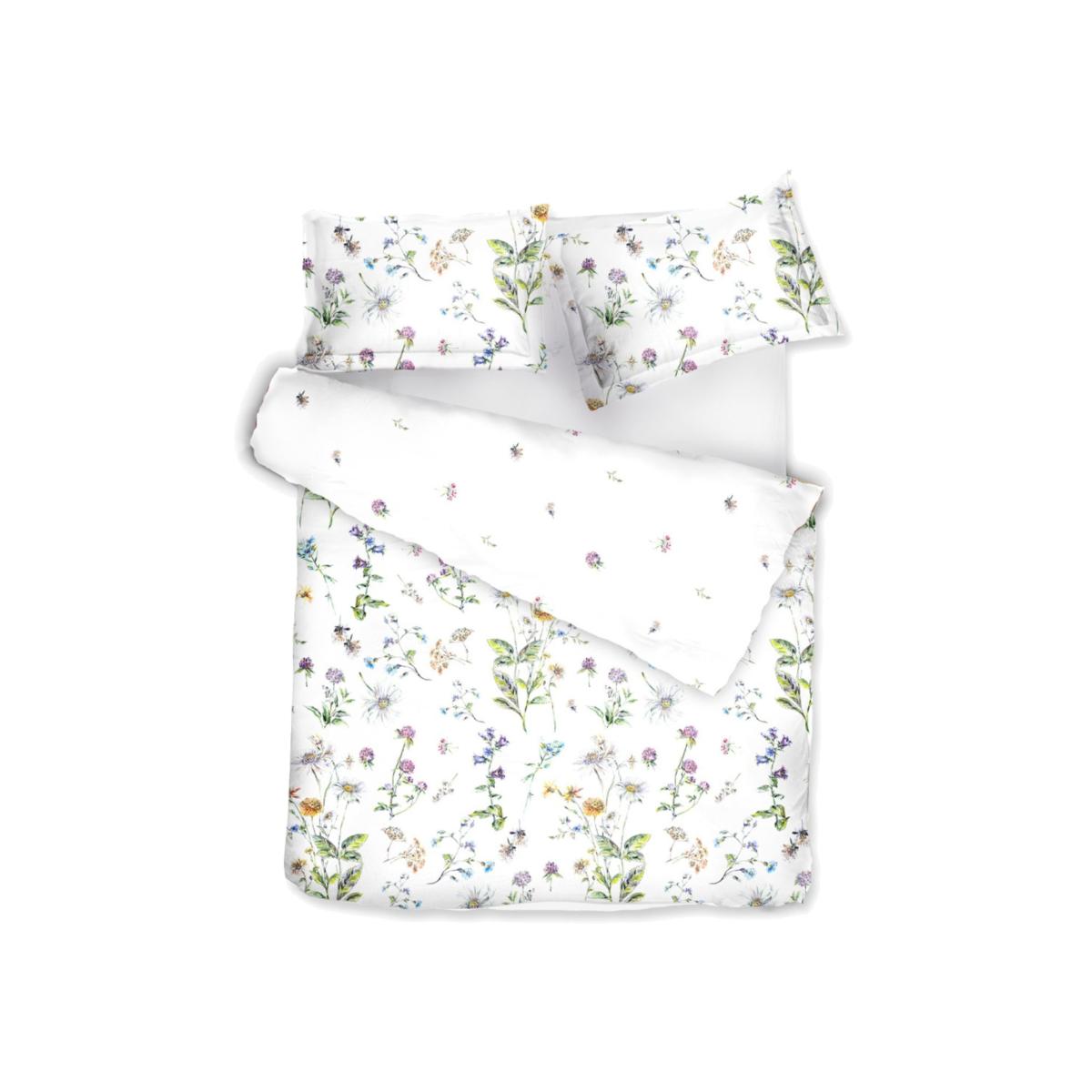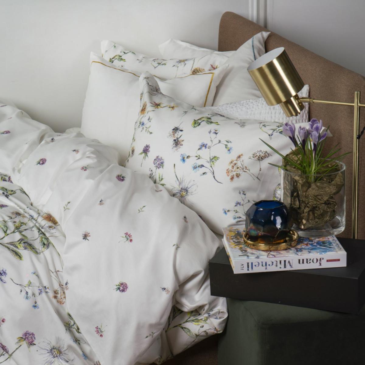 Luxurious and delicate designs speak of the magic of summer, as if a blooming meadow lies gently in your oasis of peace. Midsummer design is milky white, minimalistic flowers, arranged like meadow petals, not only give your space summer warmth, but also remind you of the lively aroma of the fields. UK Single Bedding Set: 1 duvet cover 200x200cm + 2 pillow covers 50x70cm+5cm The premium long-fiber cotton sateen with a TC300 weaving density is designed for durability. Cotton sateen is a natural material with a natural shine, soft to the touch, and very easy to care for.