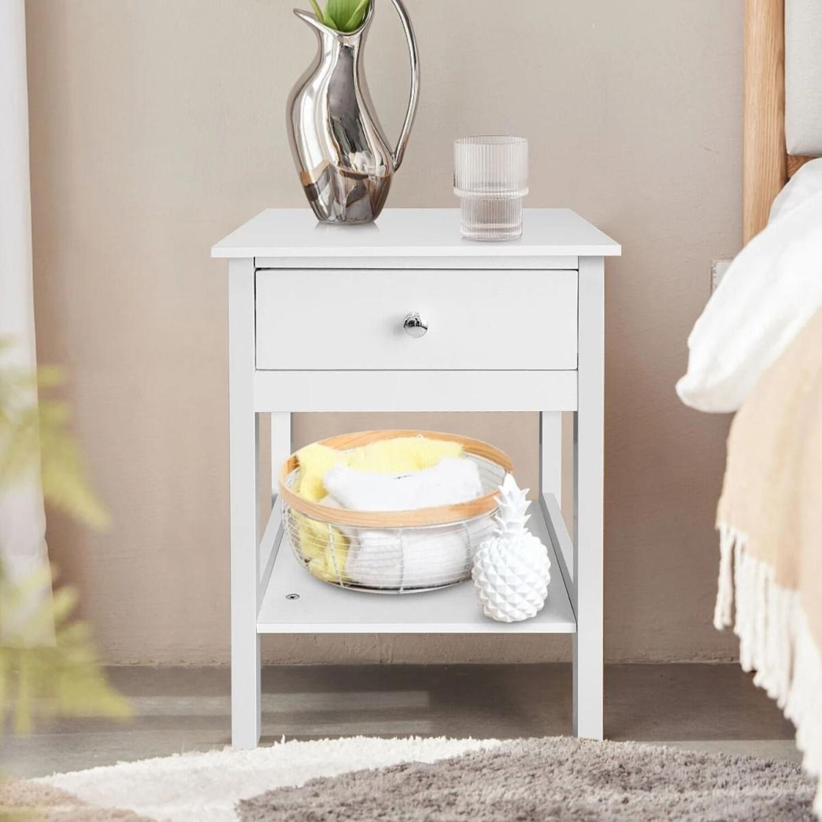 White Bedroom Bedside Cabinet with 1 Drawer and Open Shelf - White