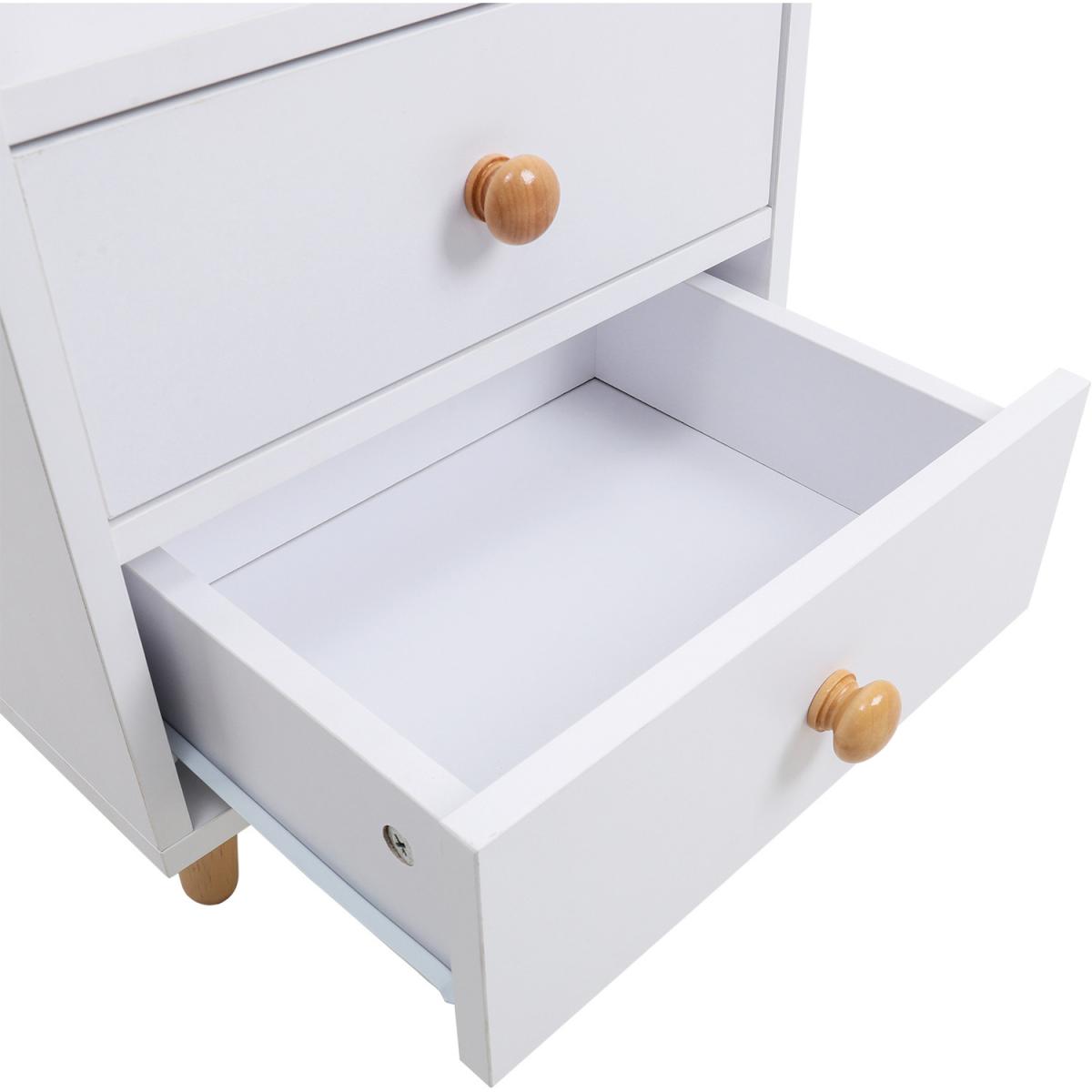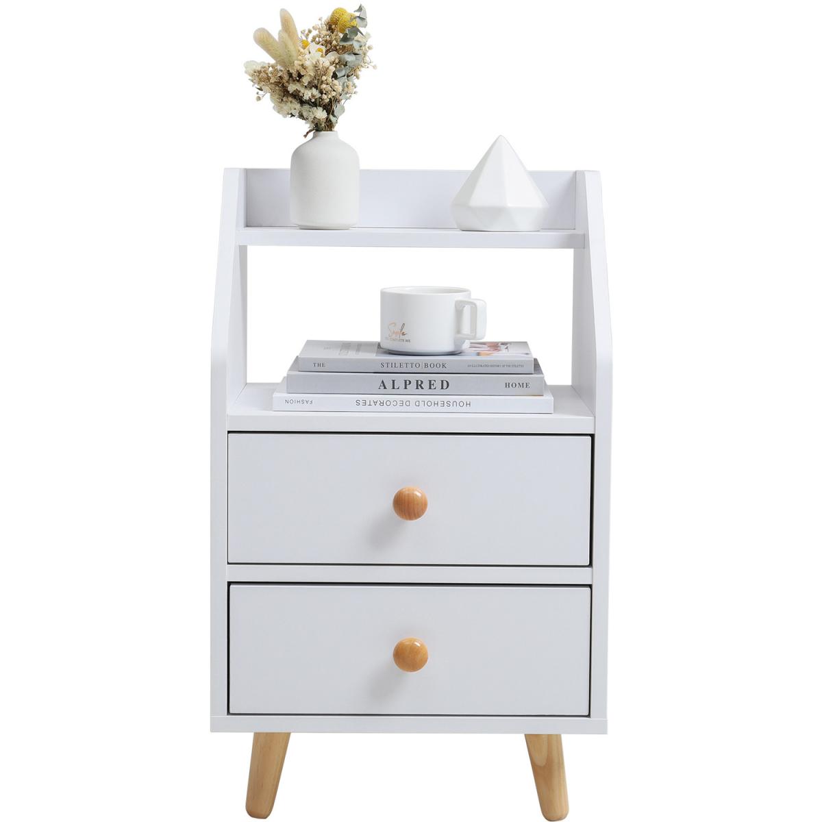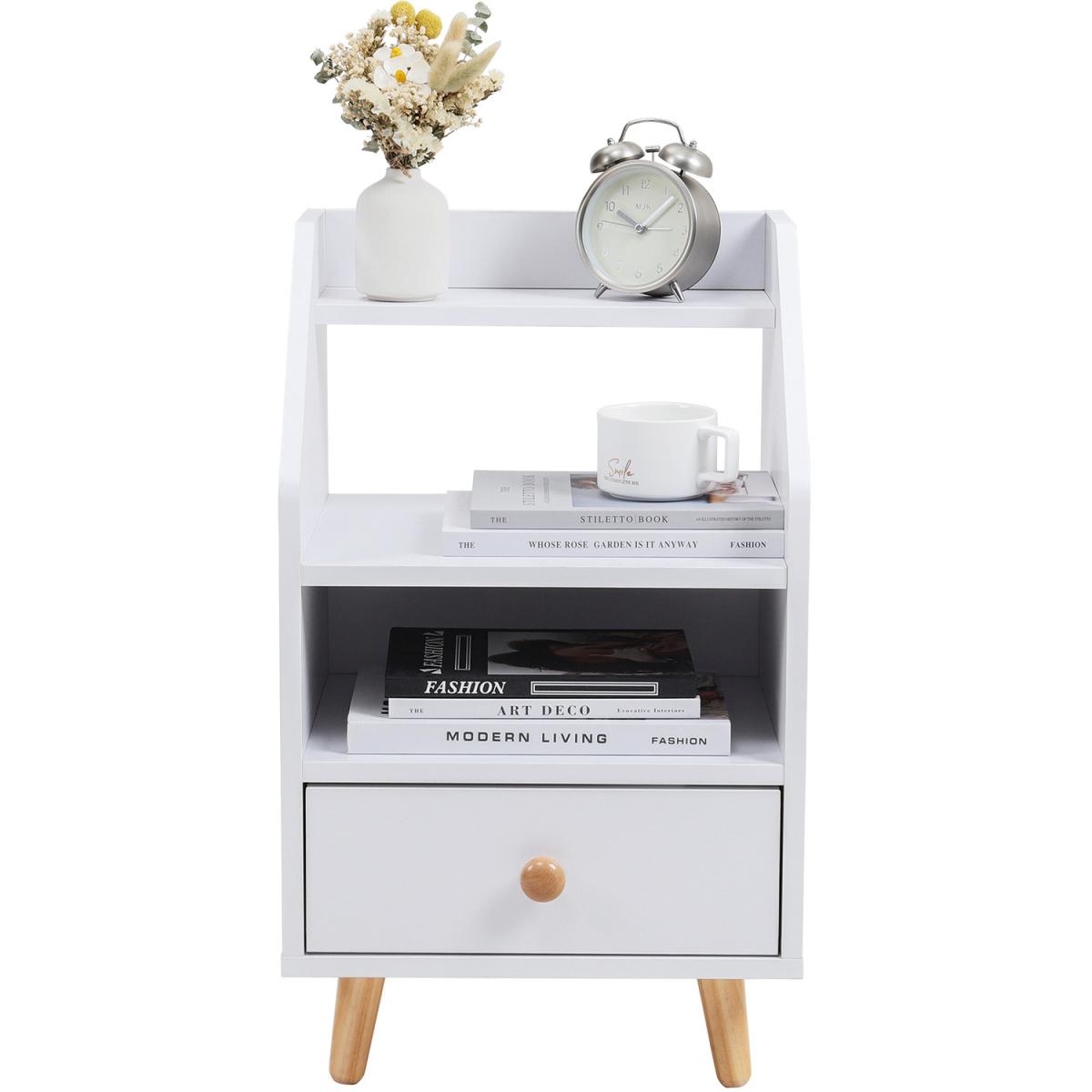 You can put it in the living room as a side table, or a small coffee table, of course, you also can put it in your bedroom as a nightstand, also be a right choice. Not merely a simple table, you'll find out there are drawers and open storage space. Attractive appearance and storage space.