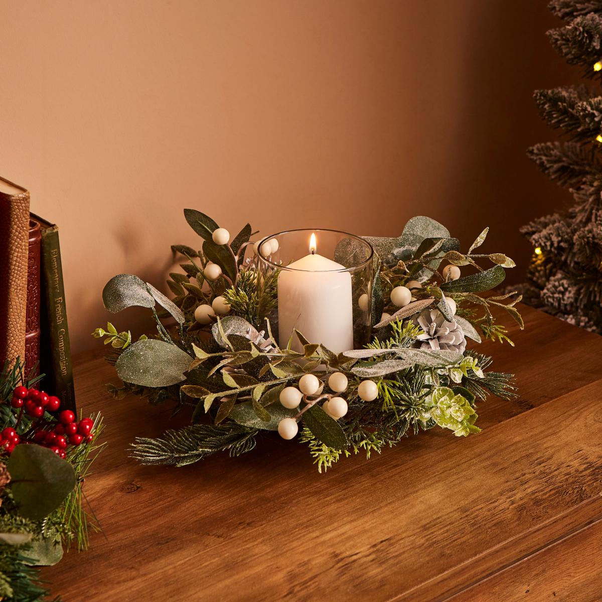 I love the White Berries & Foliage candle holder for adding a fresh, natural touch to both traditional and contemporary interiors. Its muted green hue and realistic foliage make it versatile, enhancing cosy spaces like living rooms or festive tables without overpowering other decor. For styling, try pairing it with neutral or wooden surfaces, or mix with other natural elements like pinecones or dried flowers for seasonal displays. It works equally well as a centrepiece or grouped with other candles for a layered look, providing warmth and a subtle hint of greenery.