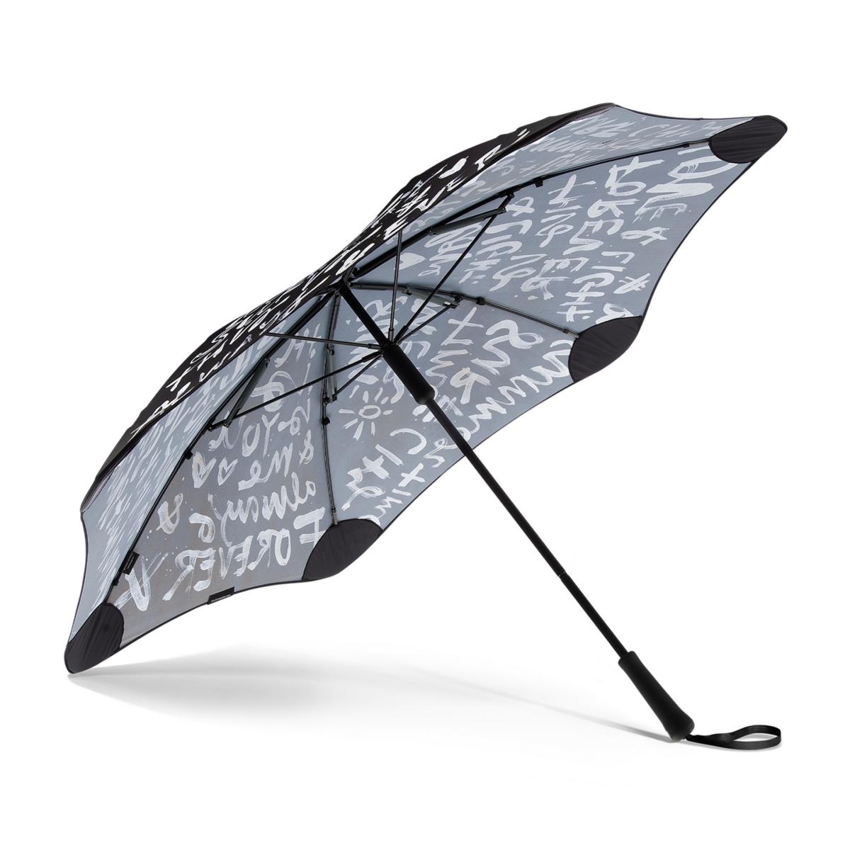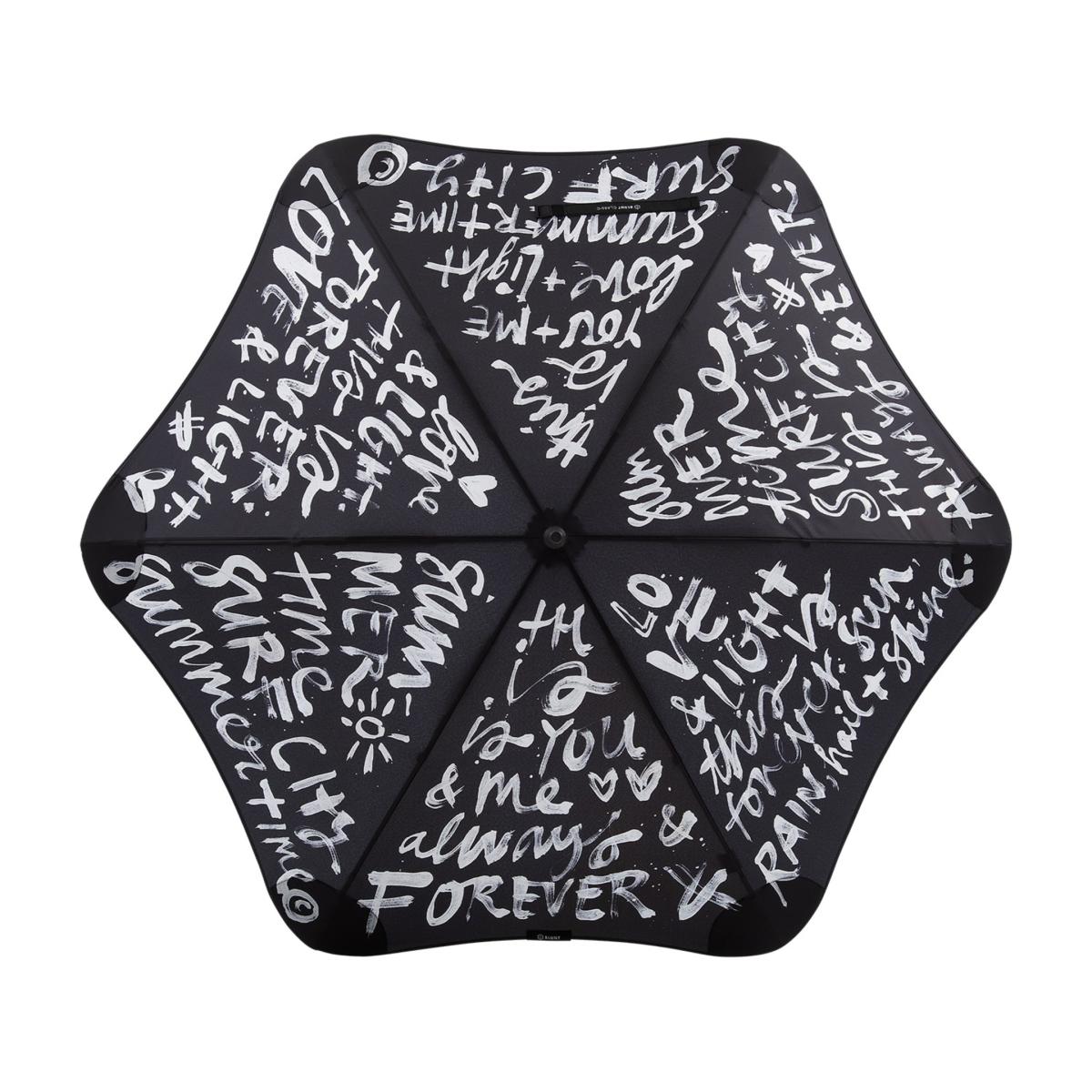 The signature abstract hand-lettering style of Nathan Johnson, the creative behind Sydney-based studio Blacklist, is the highlight of this season’s Limited Edition BLUNT Metro. Best known for his one-of-a-kind art pieces, Nathan draws great inspiration from love, which takes centre stage within the lettering of his latest monochromatic masterpiece. Referencing themes of the ocean and summertime, this dreamlike narrative creates a joyful juxtaposition to Nathan’s classically dark colour palette. This limited edition collaboration is available on both our collapsible Metro umbrella, as well as our larger Classic umbrella. A matching cover sleeve is also included with the BLUNT + Blacklist Metro.