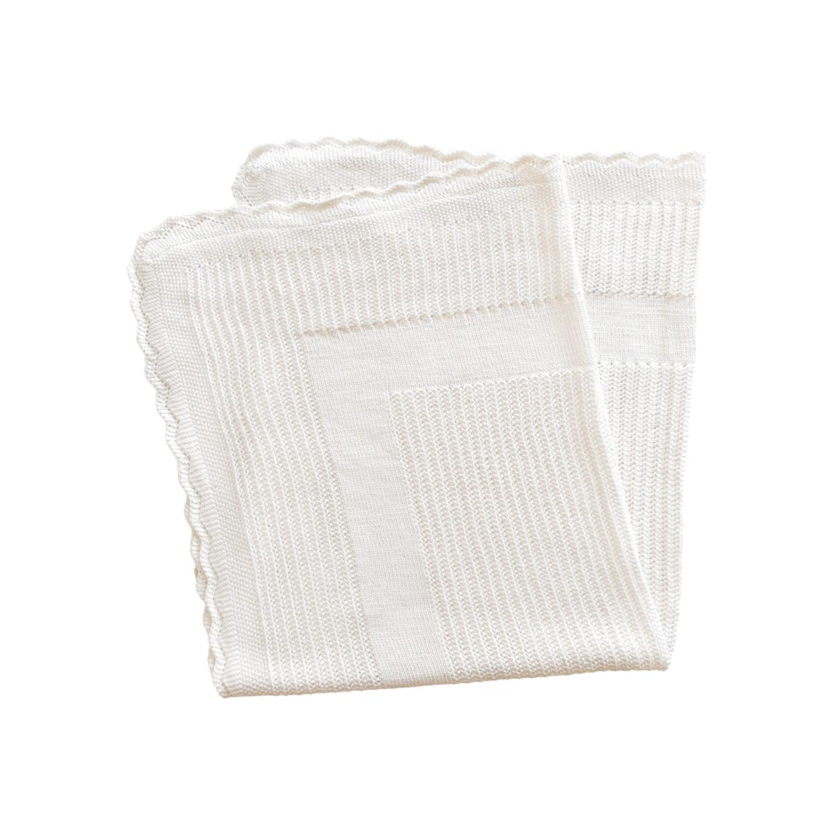 Classic white christening shawl created in a delicate lace pattern. Hand-knitted from the finest pure cashmere, this soft, enveloping shawl feels delightfully gentle on the baby's skin. The shawl includes a subtle flat-pattern border for applying a monogram or name personalisation, making it a perfect keepsake for your little one's special day. The finest Italian cashmere manufactured in the best Swiss quality.