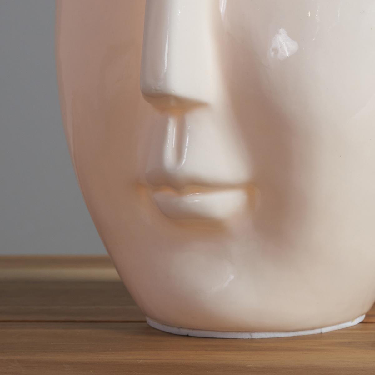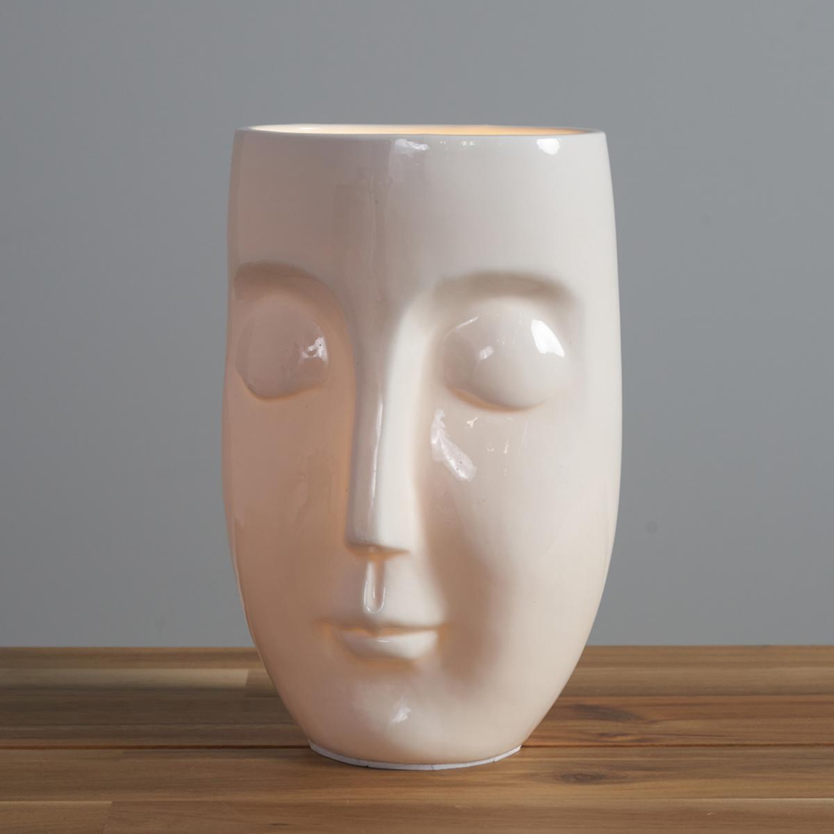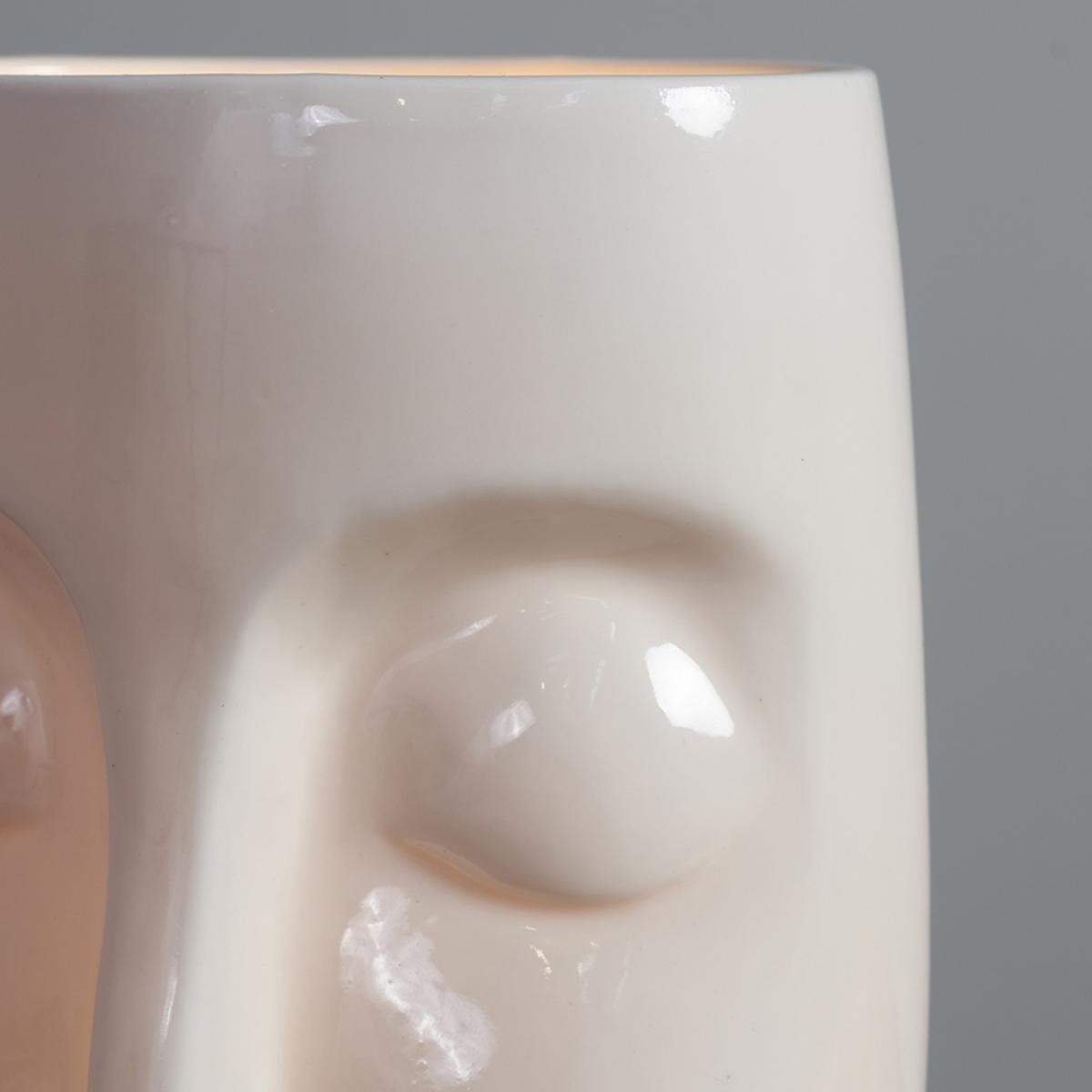 Artistic sculpted face design table lamp in a white bone china finish. Add a quirky touch to your living space with this unique table lamp! The intricate design is a great focal point - the right fitting can make a real style statement and complete your living space look. Ideal for console tables, bedside stands and shelving units!