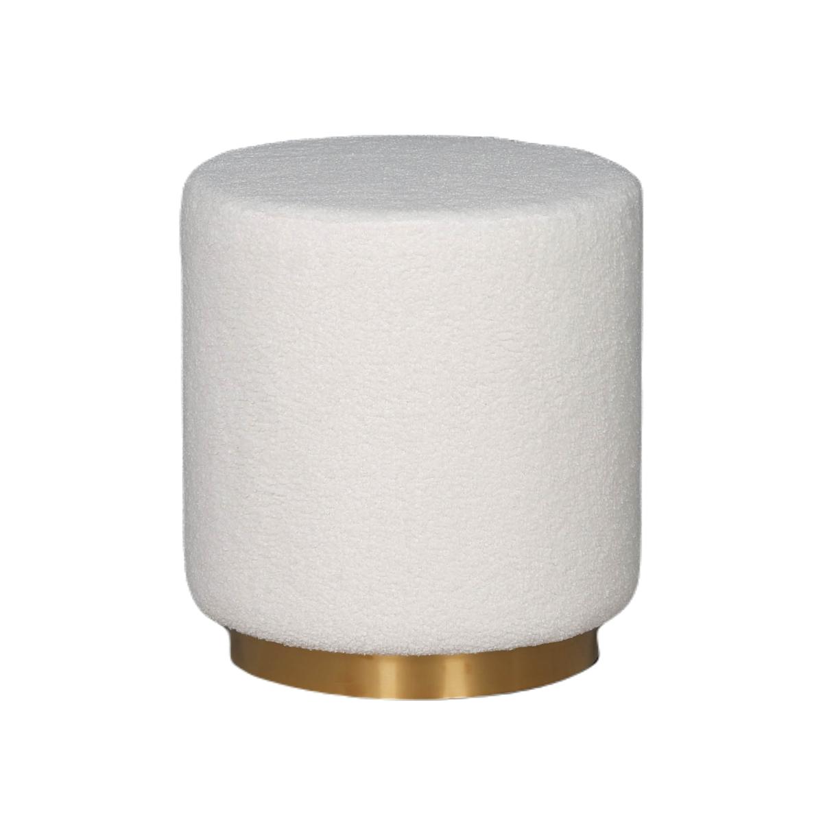 Our sleek, modern round boucle pouffe highlights premium materials and a stylish design. The textured upholstery adds richness and character. Featuring a plush, cushioned top, this soft teddy stool offers versatile use as extra seating or a convenient surface.