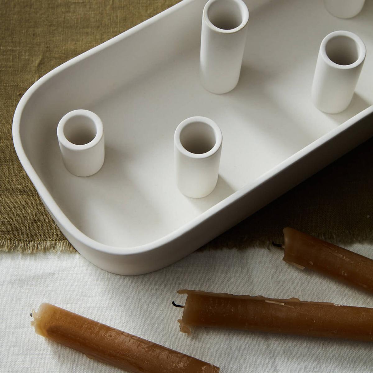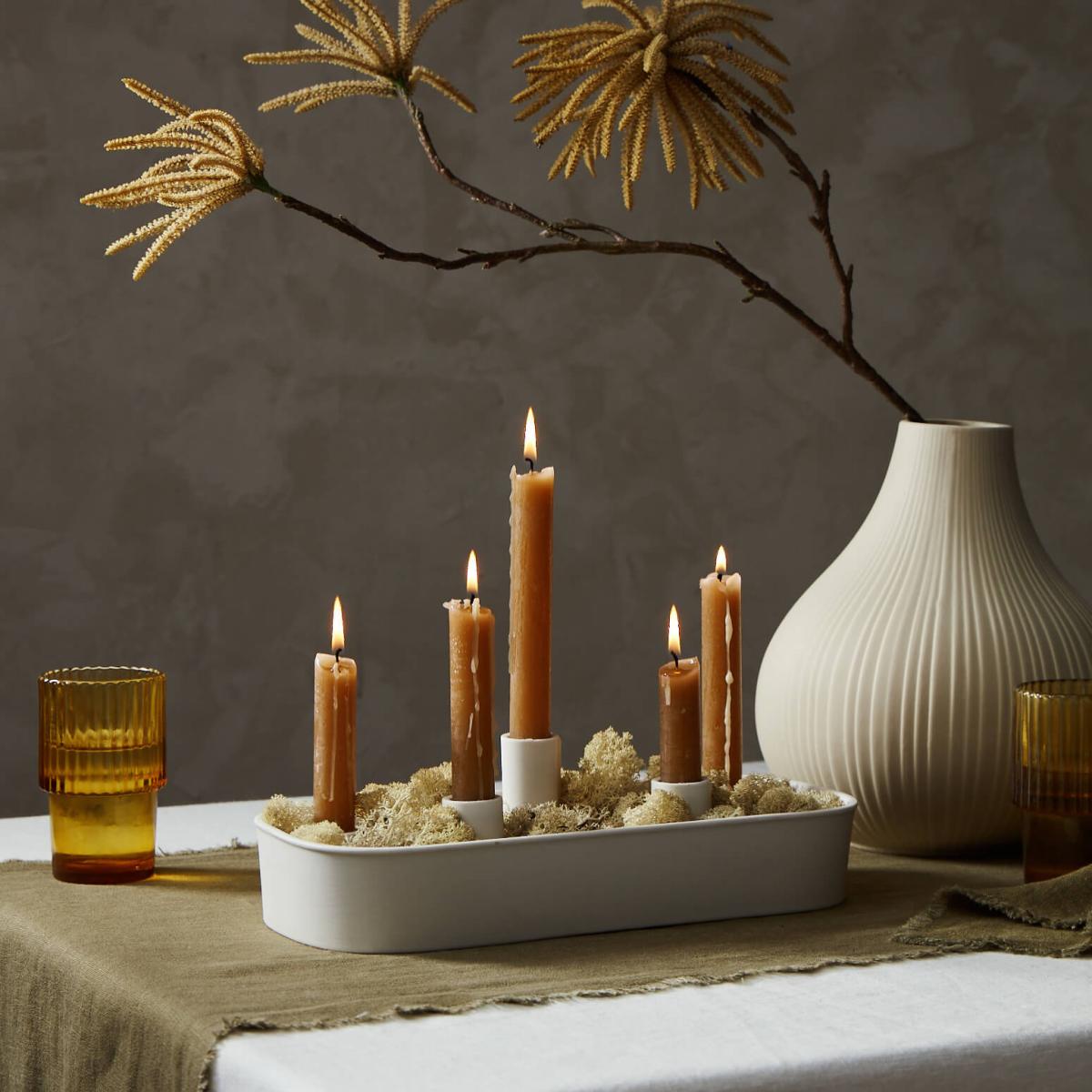 Made from beautiful matt white ceramic, this candle trough has a truly Scandinavian feel. Large enough for 5 dinner candles you can place two down the centre of your table and fill with richly scented fresh foliage, pine cones or moss to create a stunning display. Alternatively place on your window sill but be careful of naked flames.