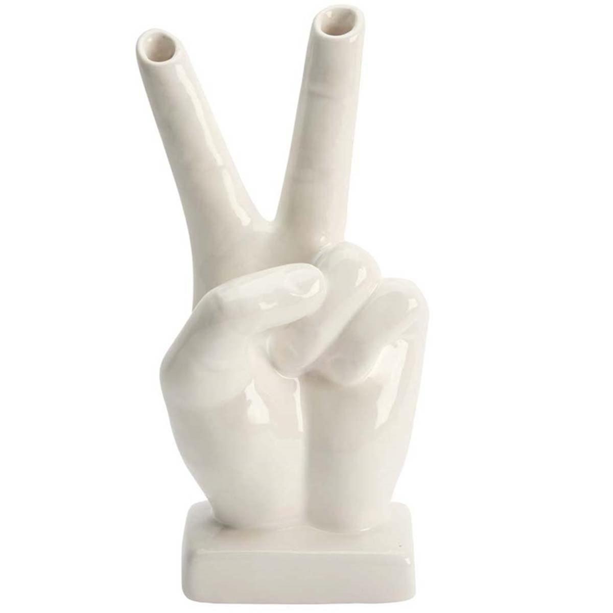 Transform your floral arrangements into captivating works of art with our White Ceramic Hand Vase. This unique vase is designed in the shape and form of a hand, creating an eye-catching centrepiece for your home. The hand-shaped design adds a touch of artistic flair to your floral arrangements. It's a conversation starter and a statement piece for any room. With two distinct spaces for flowers nestled between the fingers, this vase allows you to create stunning and balanced floral displays. Showcase your favorite blooms with elegance. Crafted from high-quality ceramic, this vase is not only visually appealing but also durable. It's designed to hold your flowers securely while adding a touch of sophistication to your decor.