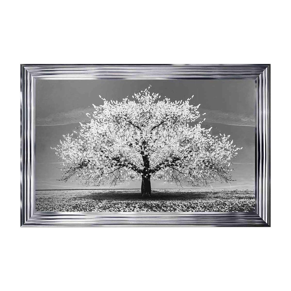 Bring new life to your walls with this winter- inspired White Cherry Tree Framed Art piece. A symbol of birth and new beginnings, its the perfect opportunity to give your space a new lease of life. Why you'll love it Modern minimalistic winter artwork. Beautifully enclosed in a chrome effect frame. Made in the UK What you need to know A paper print on an MDF back board. Hand embellished original piece. Dimensions:Height: 74cm (30 in) Width: 114cm (45 in) White Cherry Tree Framed Art - White