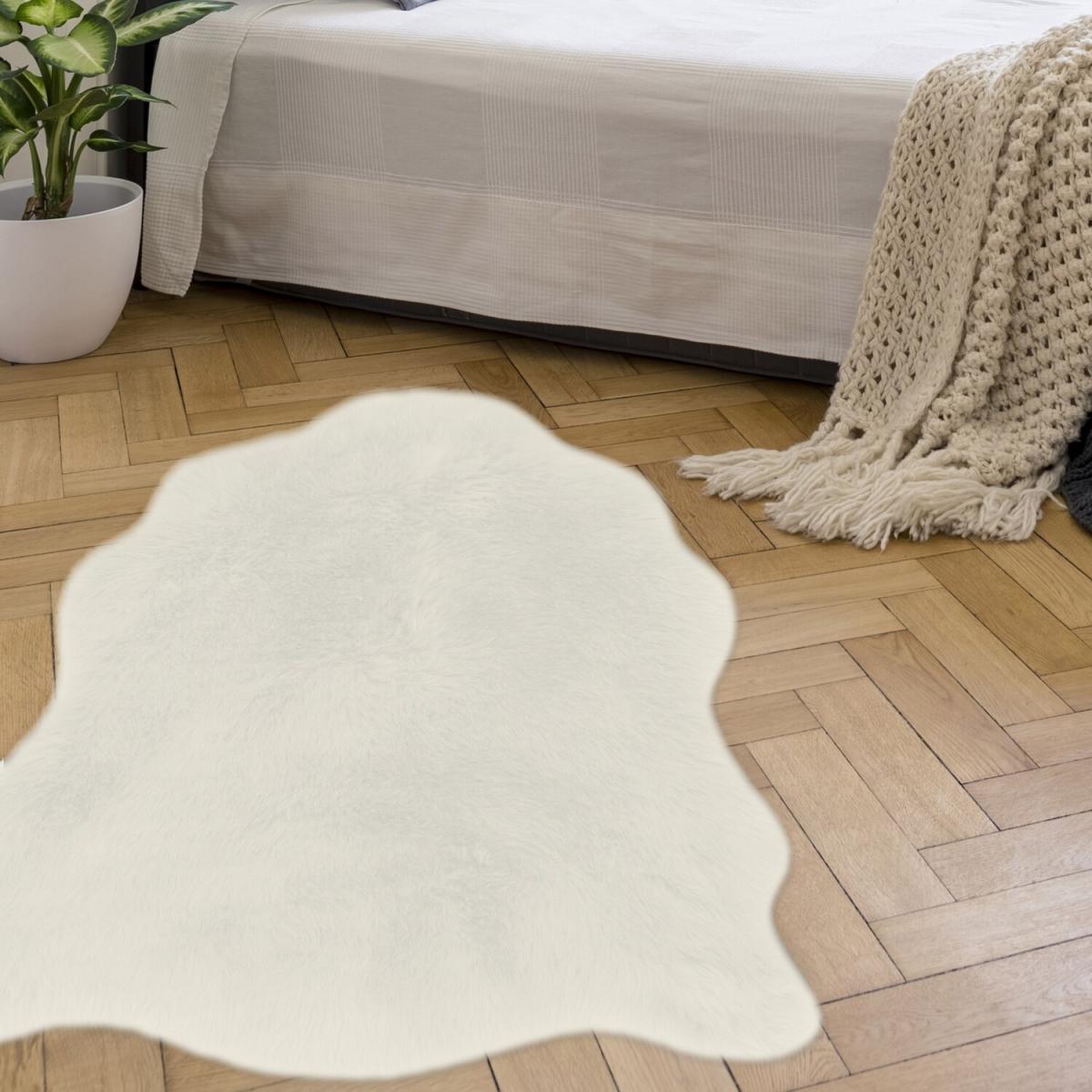 White Cosy High Pile Faux Fur Sheepskin Rug - Kinsale - White / 90cm