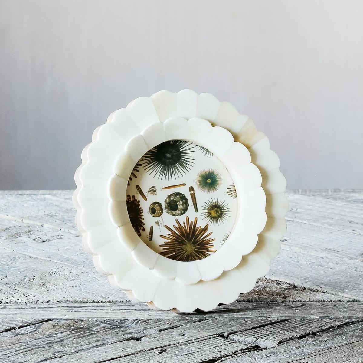 I love this one for its charming, slightly playful look that adds a touch of personality to any setting. The round bone frame with its scalloped edge provides a lovely soft contrast to more modern, minimal interiors, but it also works brilliantly in eclectic or vintage-inspired spaces. I’d suggest grouping a few together for visual interest or using it as a standalone piece in a gallery wall. To keep things streamlined, opt for black-and-white photos or artwork inside, which will complement the neutral tones of the frame while letting the design details stand out. It’s versatile enough to work on a mantel, bookshelf, or hung on a feature wall-great for adding warmth and character without overwhelming the space.