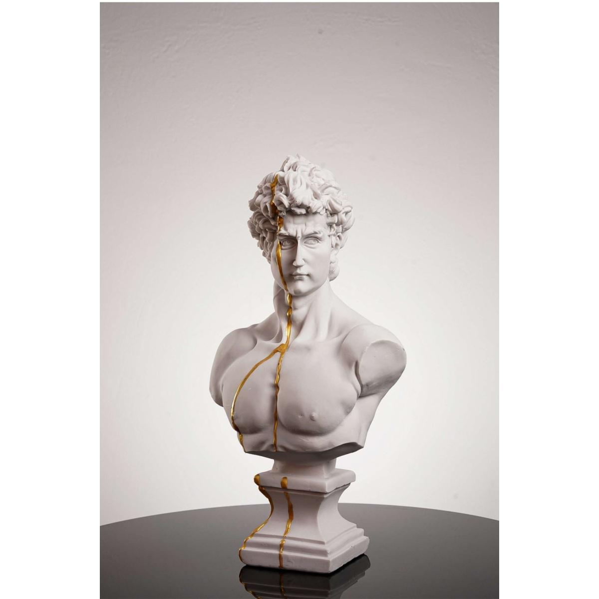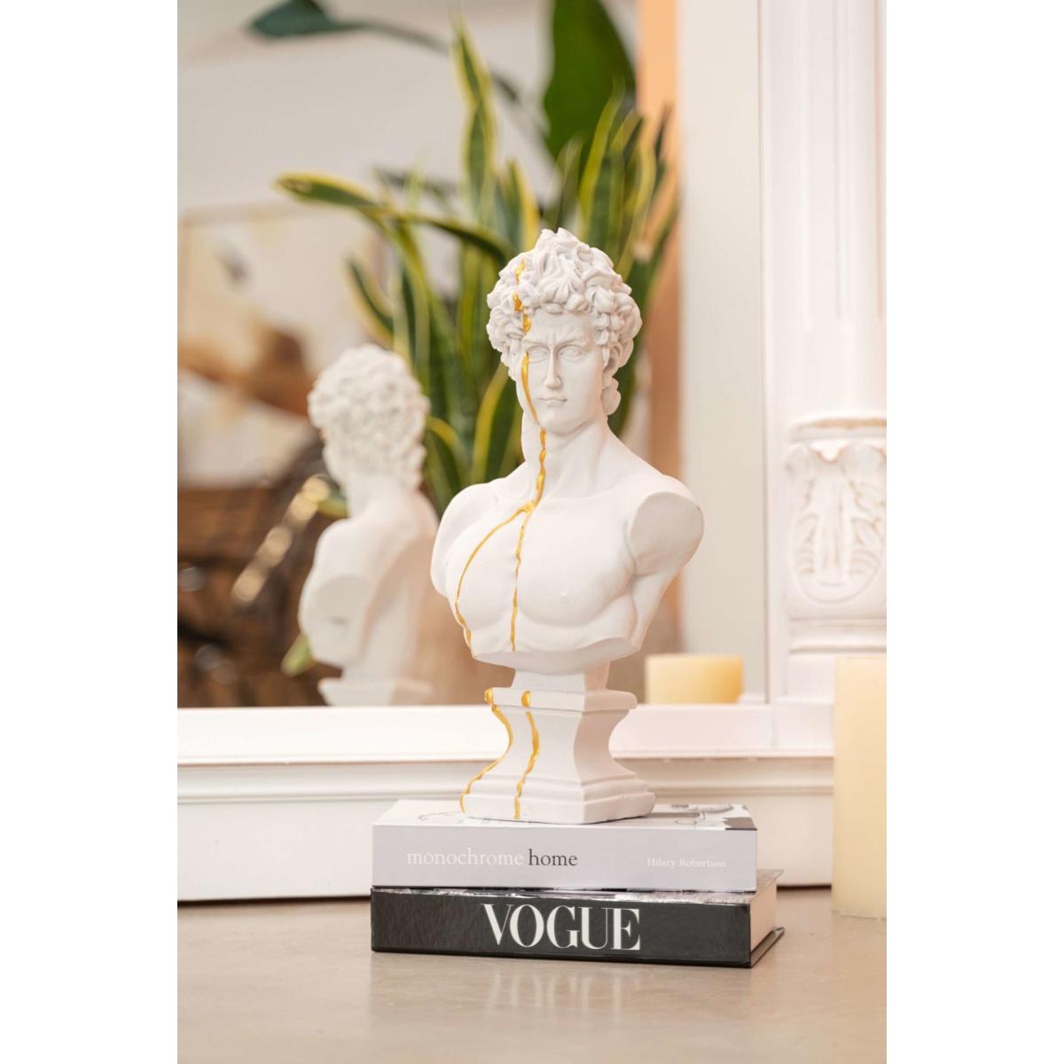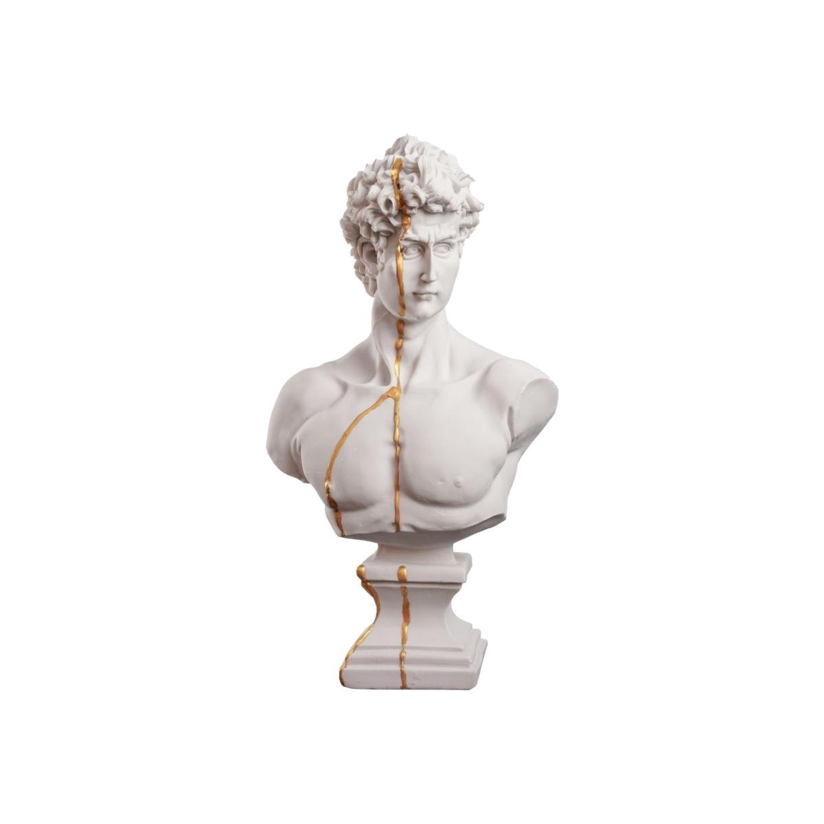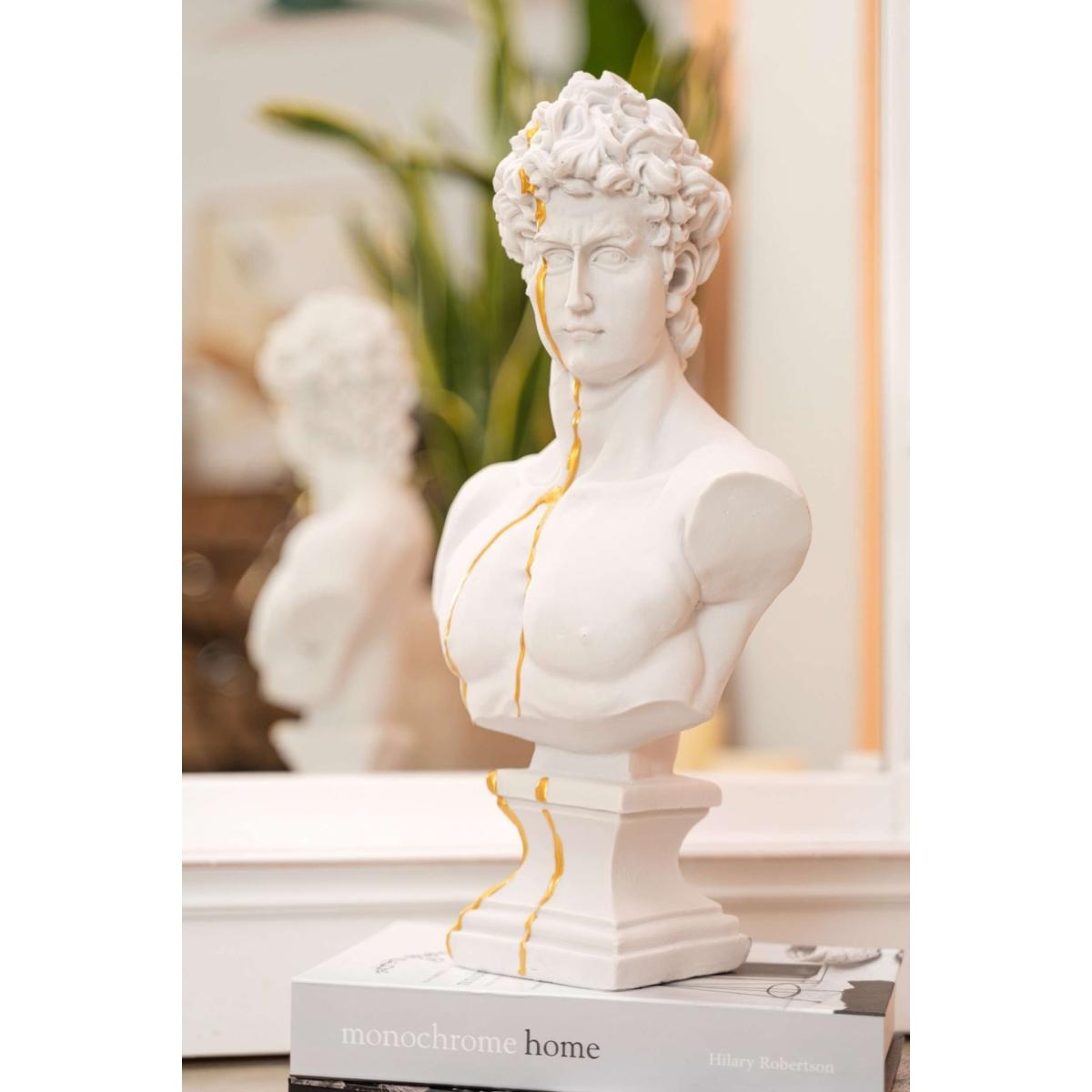 You can never have too much true beauty in your home. David, one of the most beautiful figures in the world, is here to complete your decor. This David bust is crafted to mimic Michaelangelo’s David on a smaller scale. From his signature curls to his chiseled face, this bust brings Renaissance art to life. Plus, it features a delicate stream of gold for a modern take on the figure. This David bust is handmade for perfection. Made with high-quality plaster, David’s Beauty is yours to keep. Note that the gold is not authentic gold.