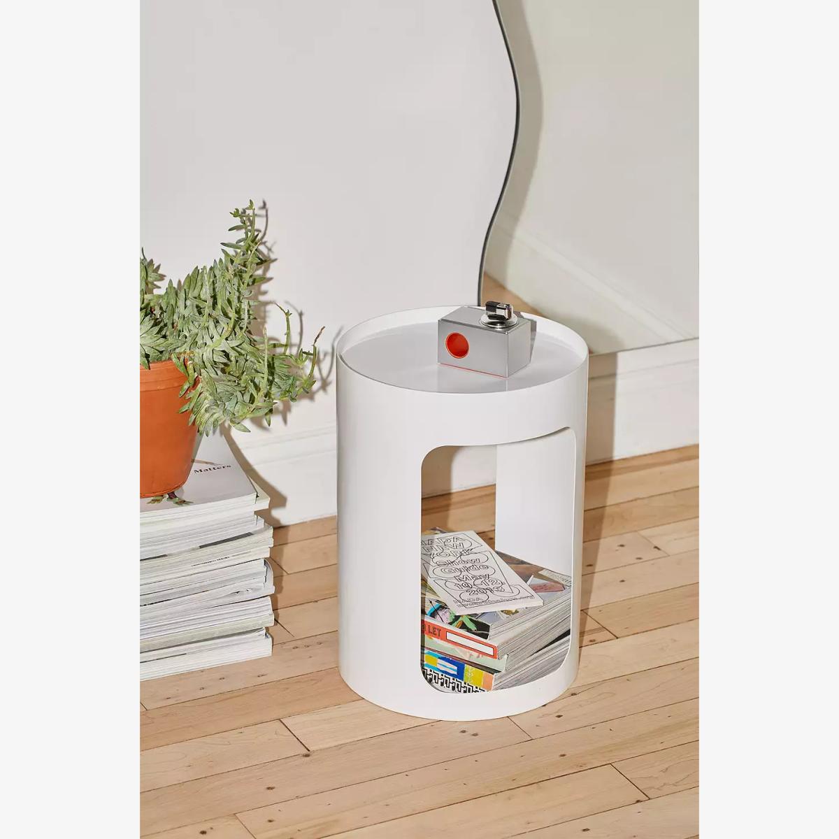 Add a contemporary touch to your space with this side table. Crafted from metal, it features a cylindrical silhouette complete with an inside space for extra storage. *Online return only. This item cannot be returned instore. Please note furniture items currently cannot be shipped to Northern Ireland or The Republic of Ireland. Delivery of large furniture items may take 1-2 weeks and are therefore not eligible for Next Day Delivery.* **Content + Care** \- Iron- Wipe clean **Size** \- Dimensions:Dia: 29.84 cm x H: 41.9 cm- Weight: 9 lbs- Shipping package dimensions: L: 36.83 cm x W: 36.83 cm X H: 48.26 cm- Shipping package weight: 15.7 lbs