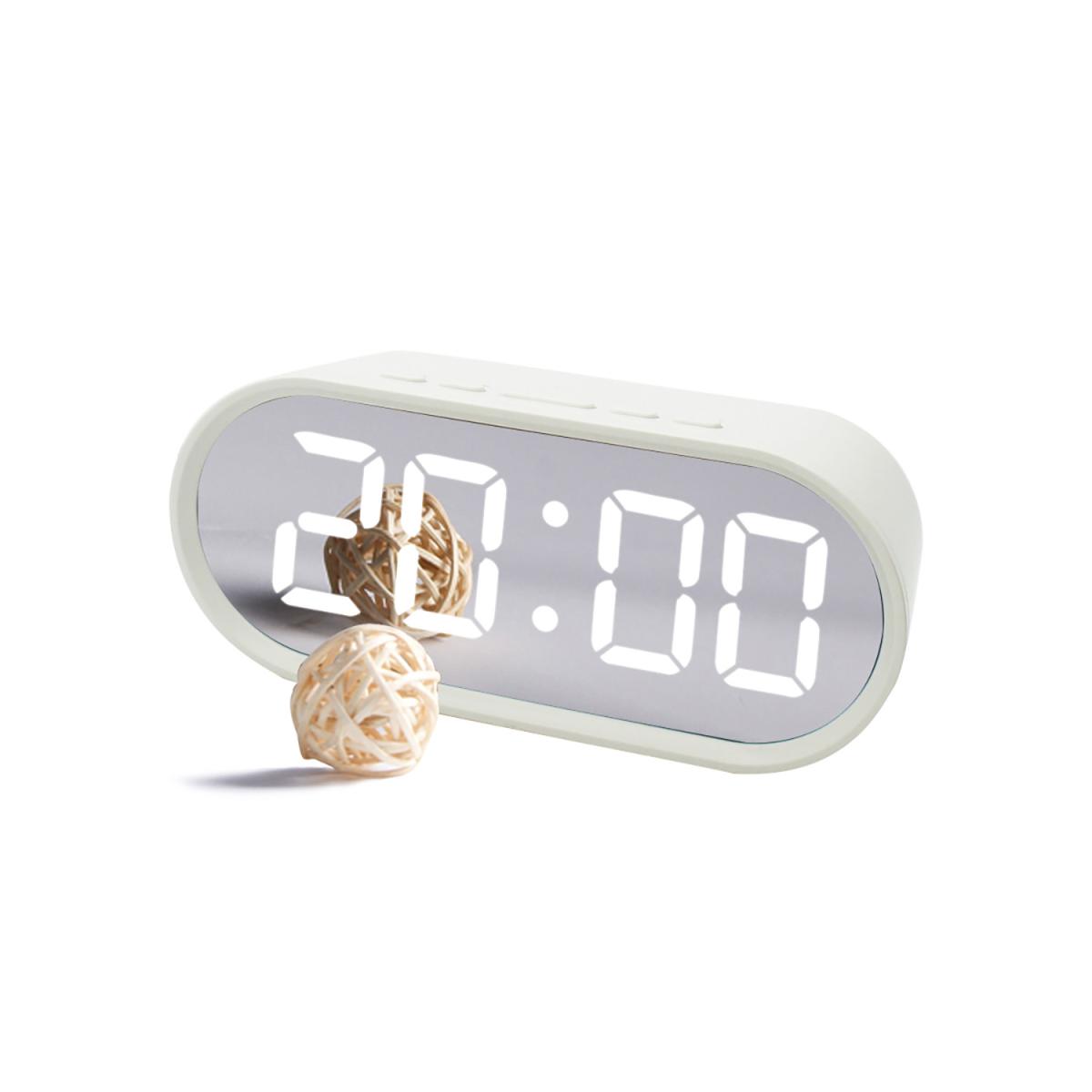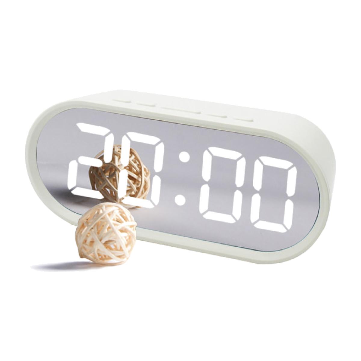 The White Digital Alarm Clock is a sleek and beautiful addition to any bedroom space. Able to display the time in the 12 and 24 hour formats, it has an alarm and snooze button as well as 2 light settings. In addition to that, there's also an automatic night luminance display that reduces the brightness at night to help you unwind and relax of an evening. The clock can display the temperature in celsius or fahrenheit and is finished with a mirrored face.