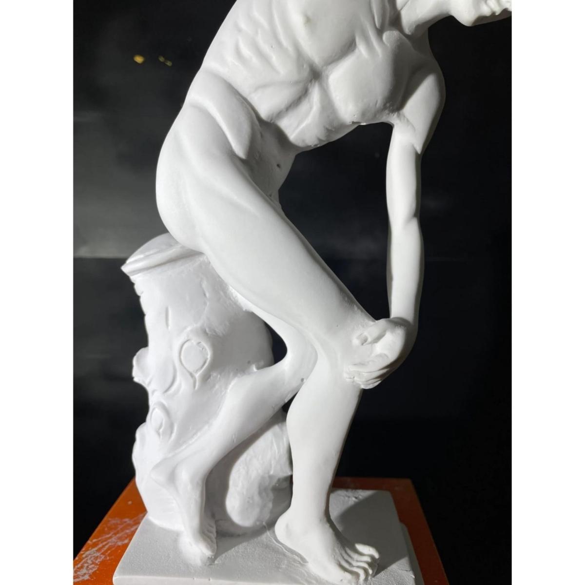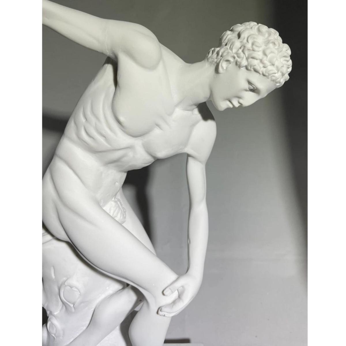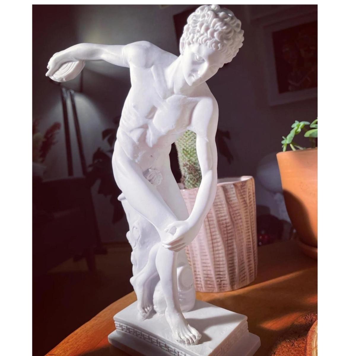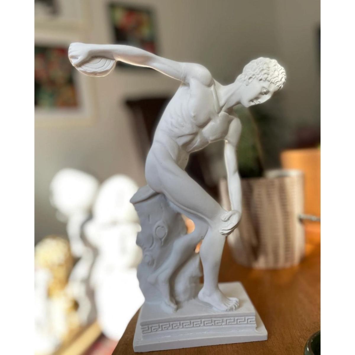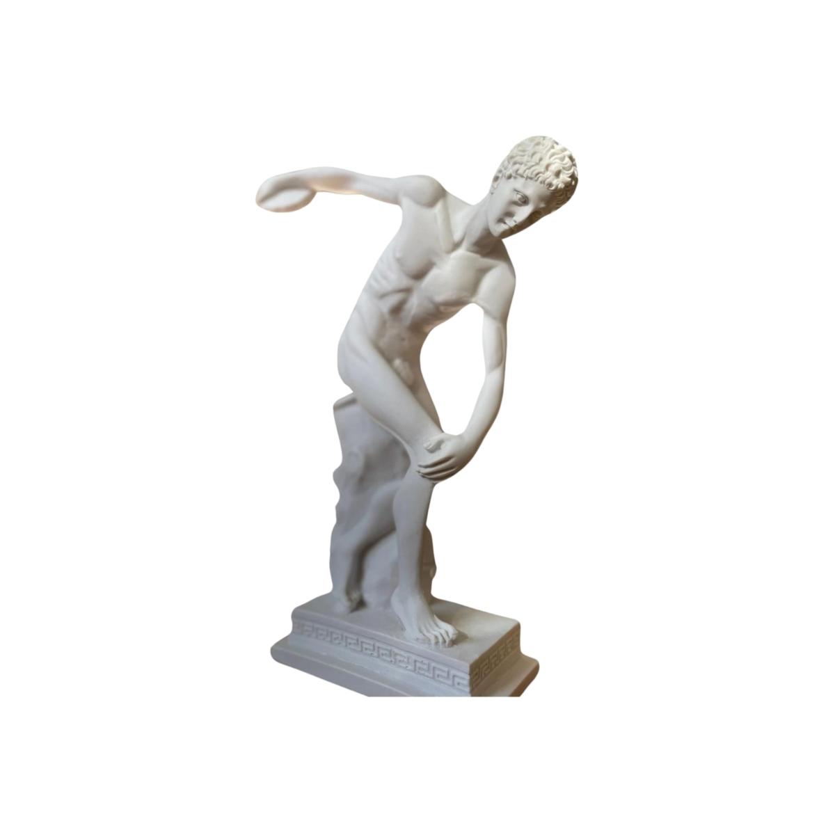 "White Discobolus" is a 28 x 10 cm sculpture that captures the timeless beauty of the ancient Greek athletic ideal. This nude statue, colored in pristine white, is a modern interpretation of the famous Discobolus, or "Discus Thrower," reflecting the harmonious blend of athleticism and art. The sleek, minimalist design highlights the muscular form and poised elegance of the athlete, making it a perfect centerpiece for those who appreciate classical art with a contemporary twist. Ideal for art collectors and enthusiasts, this sculpture brings a touch of ancient Greece into any modern space.