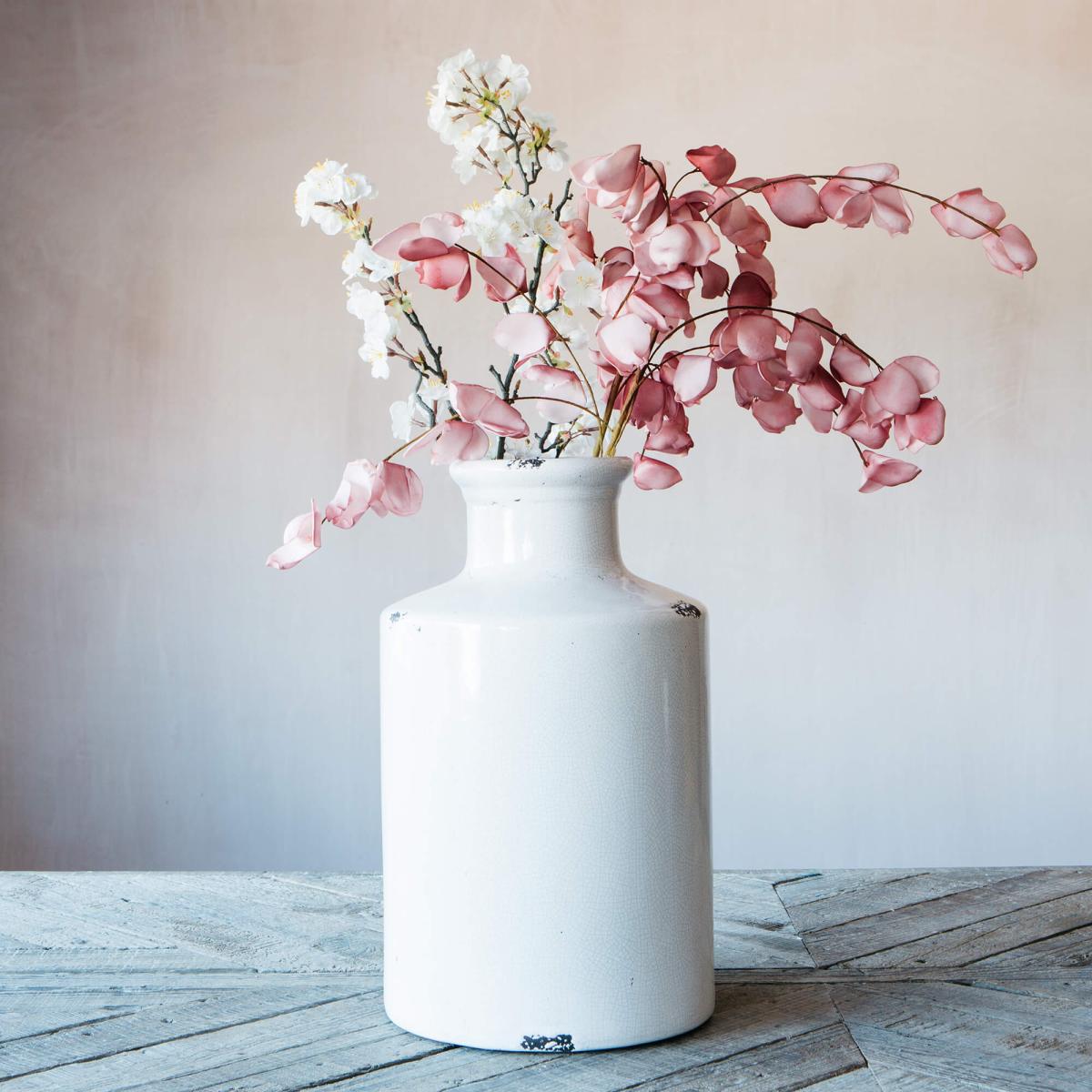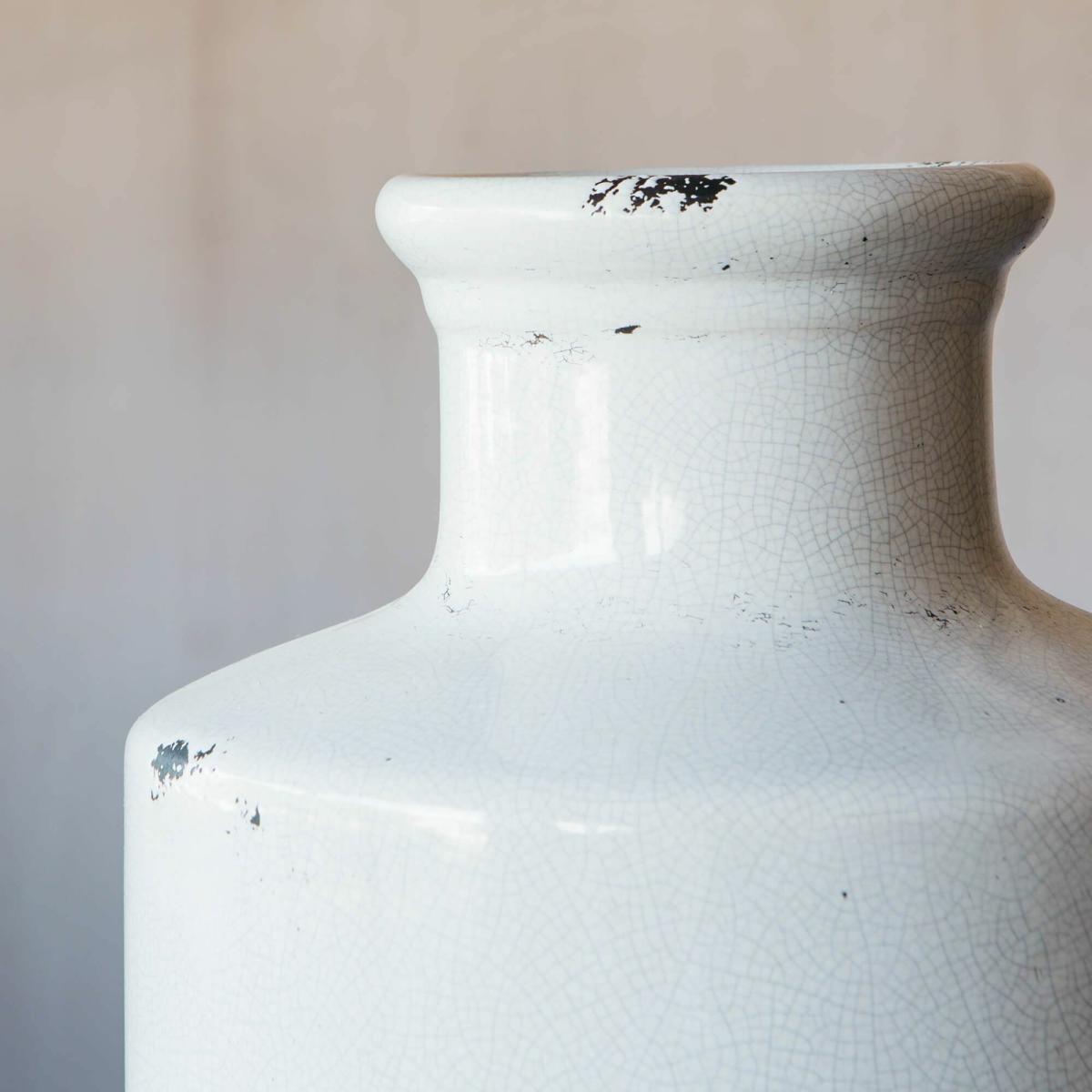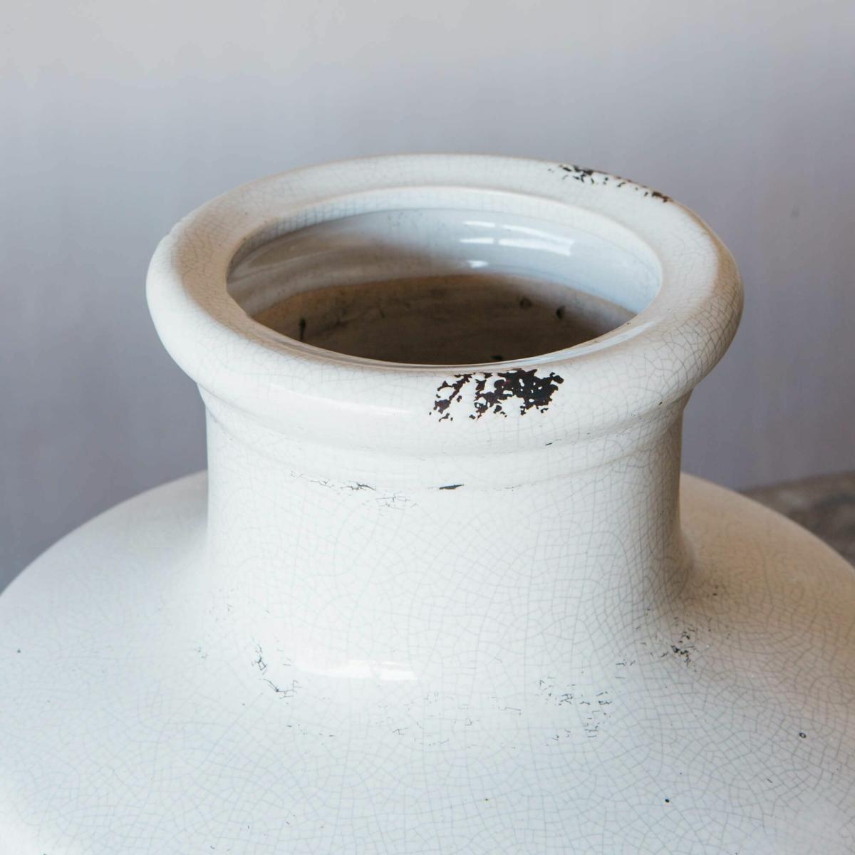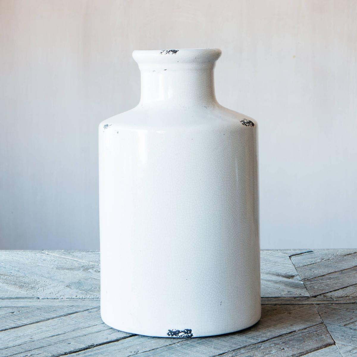 A truly vintage-inspired piece. The crackled glaze is reminiscent of classic french ceramics. Pair with a contrasting bouquet for a romantic look and feel.