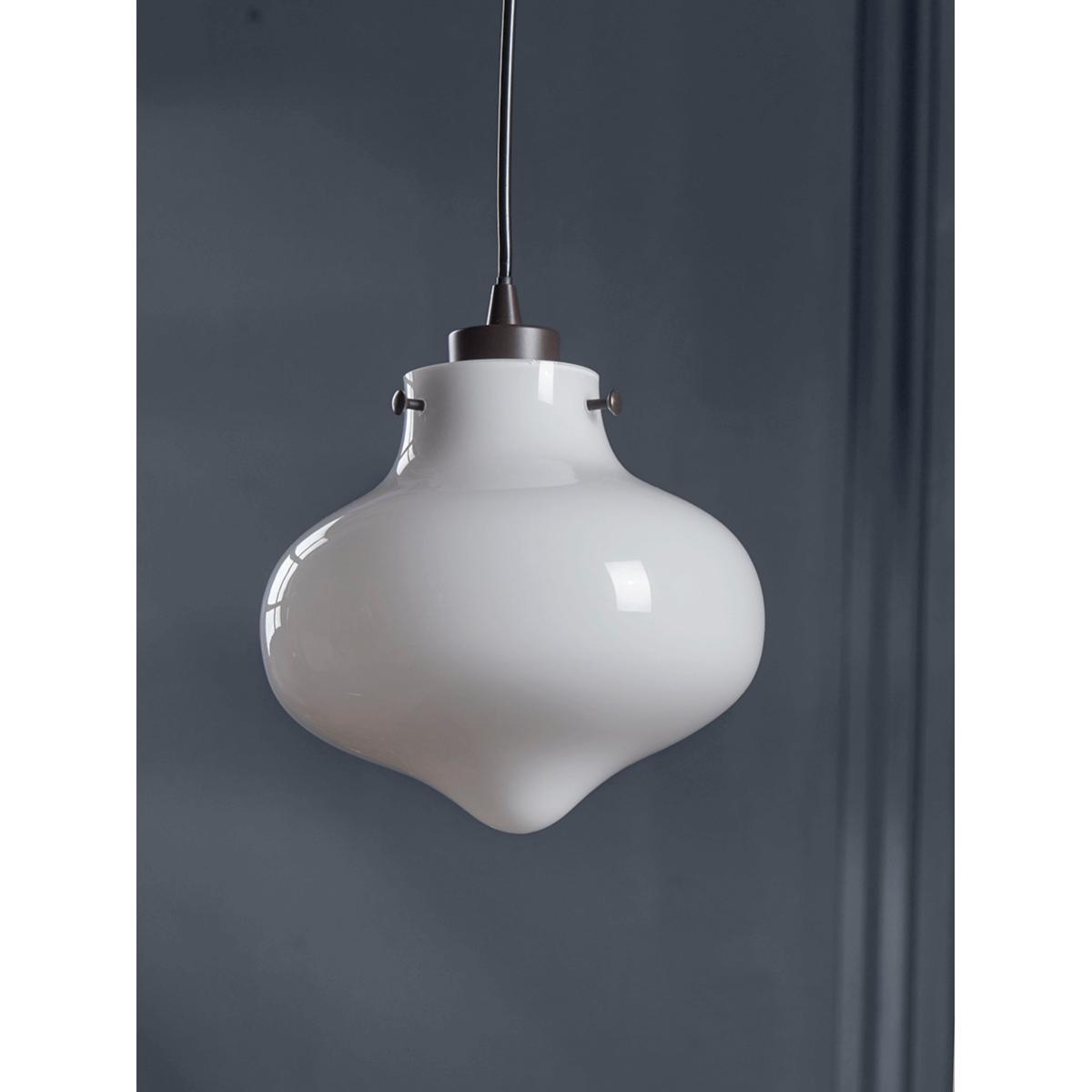 A contemporary take on the Deco milk light, our pendant comes with a feature milk glass shade in a lovely drop shape. By its unique design this pendant might just complete the look of your room by its authentic, timeless look. Position to a hall, living space or kitchen to complement any considered scheme.