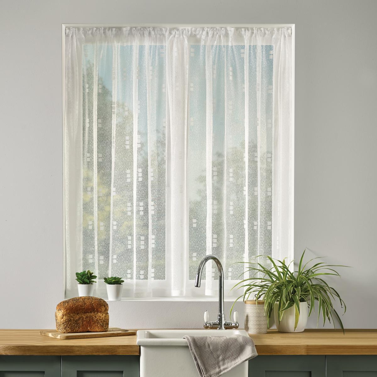 I love the White Echo Lace Curtain for its delicate texture and timeless appeal. It's a versatile choice that works well in both traditional and cottage-style interiors, adding a touch of softness without overwhelming the space. Perfect for bringing in natural light while maintaining privacy, this fabric looks great paired with light-coloured walls and minimal accessories. For styling tips, consider layering it with heavier curtains for a more dramatic look or leaving it plain for a breezy, casual feel. Its transparent quality ensures it complements a range of colour schemes and furniture styles, making it a go-to choice for creating a fresh and airy atmosphere.