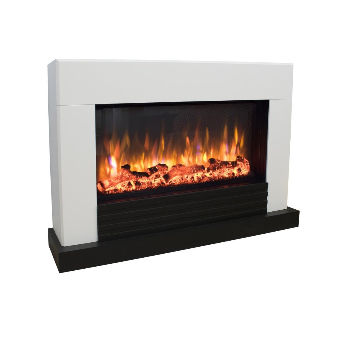 The Raby is an integrated electric fire with a glowing wood fuel bed. The contrasting white surround compliments the black design of the fire, making it a perfect addition to any modern home. Featuring up to 2KW heat output, thermostatic control, flat to wall fixing as well as eco design complient.