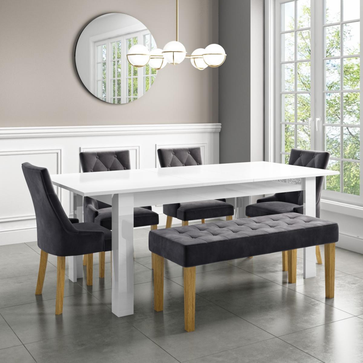 Features we love Ideal for 4-6 diners – folding design saves space when not in use. Quickly make extra dining space with the extension leaf mechanism. Clean design with a sleek finish adds a modern touch to the dining space Smooth high gloss finish – super easy to wipe clean. In white it easily coordinates with other dining furniture. Including just the table you're free to pair it with the chairs of your choice All about me. This contemporary Vivienne dining table has a hidden secret it features a clever table top design where the top pulls apart to lift up an extra table leaf giving extra dining space. It comes in handy for increasing your dining space when guests come to call when the family are around for Sunday lunch or if you're simply serving up a feast and need more space for dishes. The table comfortably accommodates four diners when closed and when fully extended there's plenty of space for six diners. As it's neat and compact when closed it's great for saving space in your dining room or kitchen when it's not in use. The table comes on its own so you have the freedom to pair it with the chairs of your choice and the number that best suits your household. With a clean and linear design all in white the Vivienne table is super easy to coordinate with other dining furniture and many décor schemes. The sleek high gloss finish gives the table its own natural shine that reflects light beautifully plus the smooth nature of the table makes it super easy to wipe clean. Need to know. Dimensions (closed). H75 x W160 x D90 cm Dimensions (extended). H75 x W200 x D90 cm Size. 4-6 Diners Material. Wood combination Finish. White high gloss Assembly required. Yes.