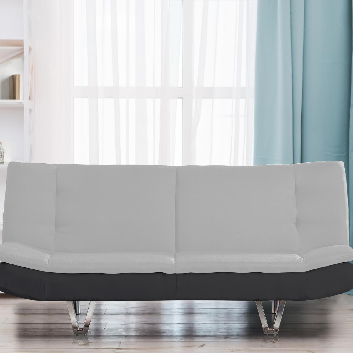 This stylishly modern sofa bed with an elegant curved design would make a sophisticated addition to the contemporary home. This sofa bed effortlessly converts from a comfortable 3 seater sofa into an ideal bed for two, perfect for when you have unexpected guests. Finished with polished chrome legs that are v-shaped at the front and supporting legs at the back. This versatile fold down sofa bed is made with a simple click-clack mechanism allowing it to transform into a comfortable bed in seconds. Simply pull the backrest forward until you hear the click and then lay it down into a flatbed. Convert into a sofa again by raising the backrest until it clicks into place. This sofa has the option to be placed in either a sitting, reclining or sleeping position.