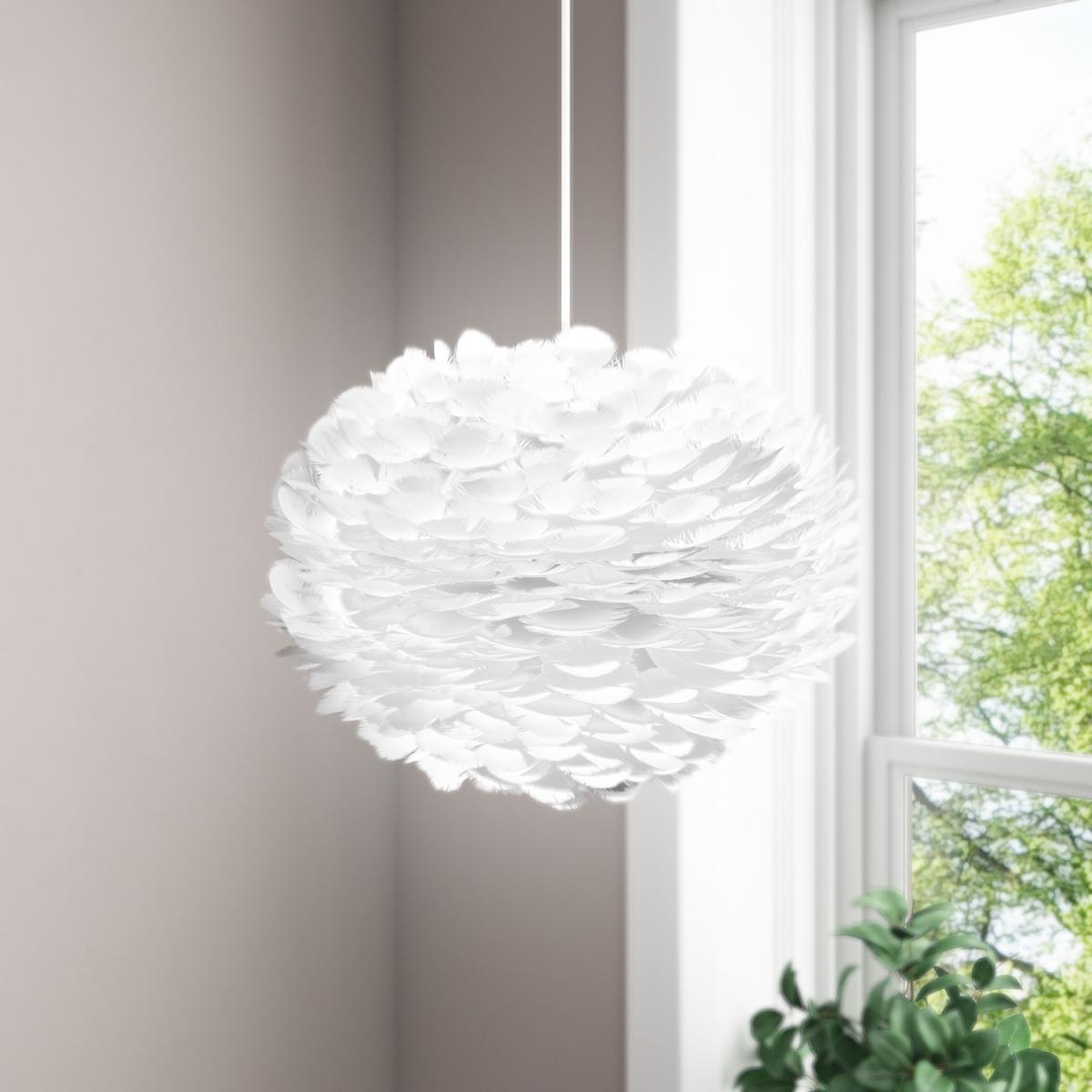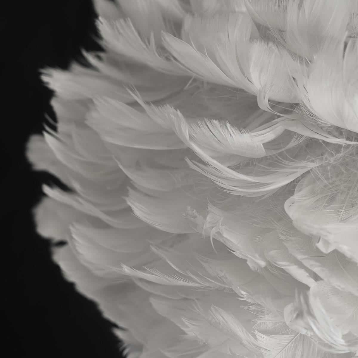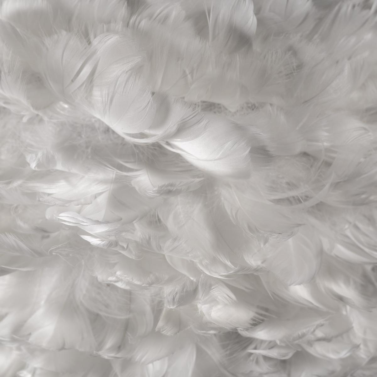 Handmade faux feather pendant light Crisp white feathers create a soft light Add a touch of glamour to any dining or living room E27 and LED bulb compatible, bulbs sold separately