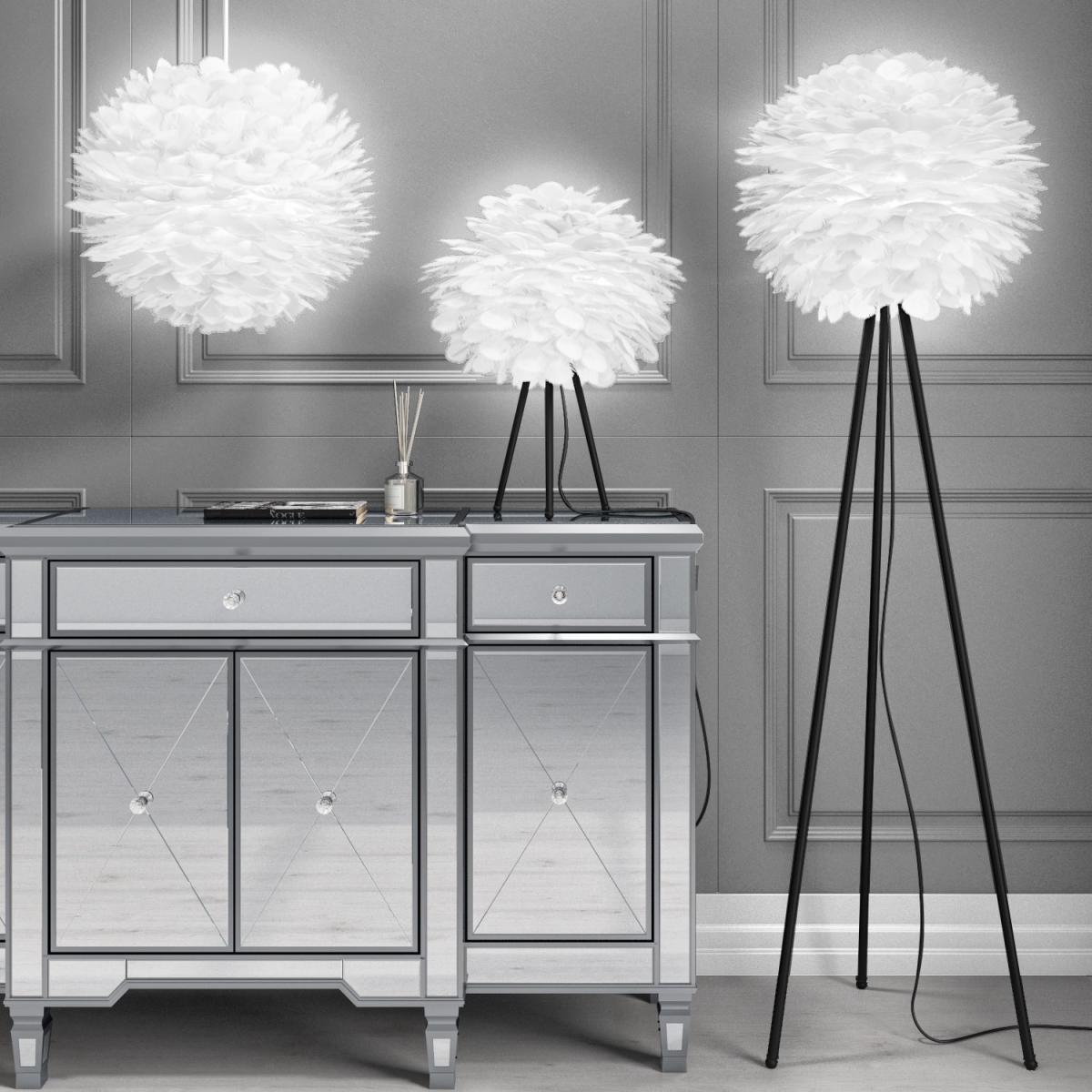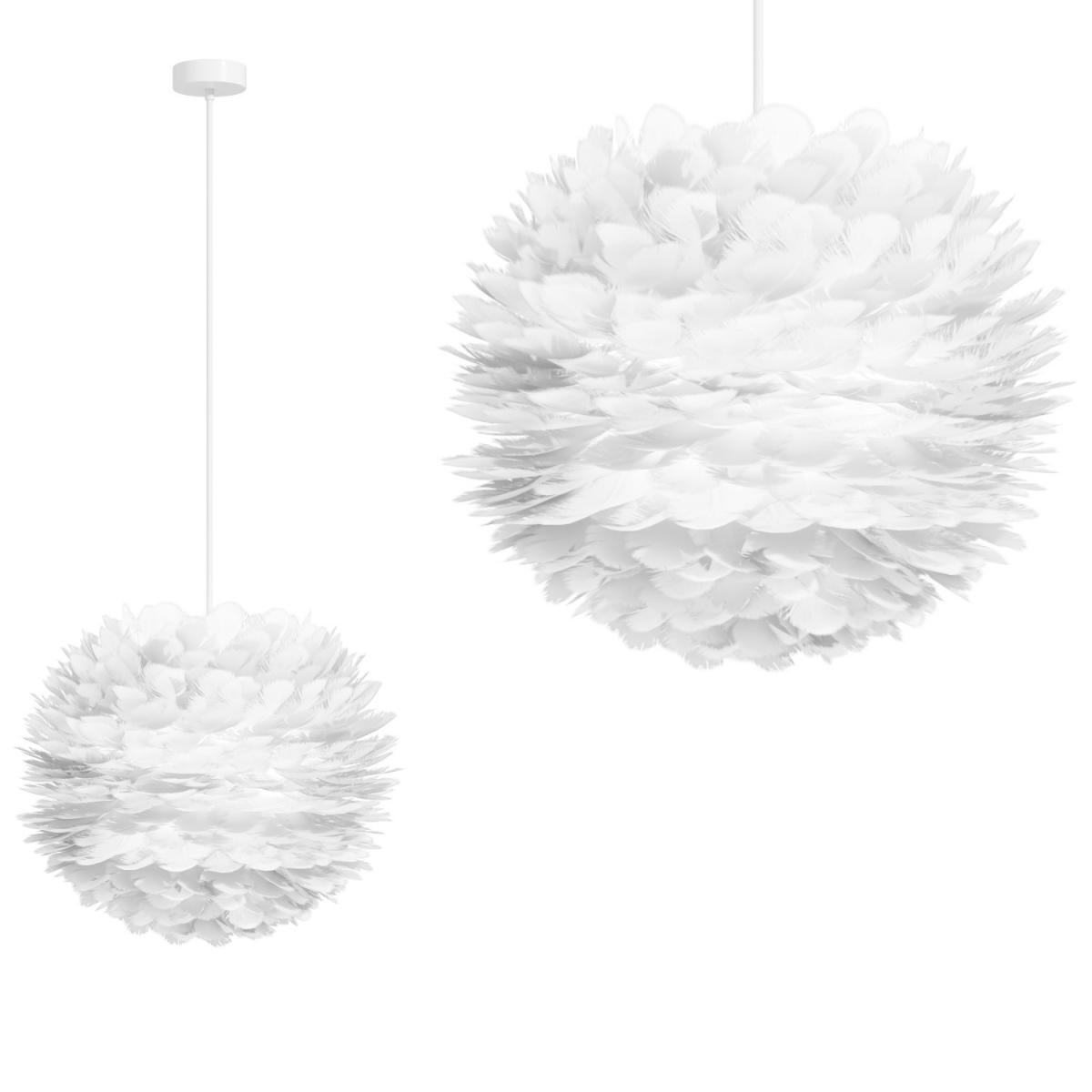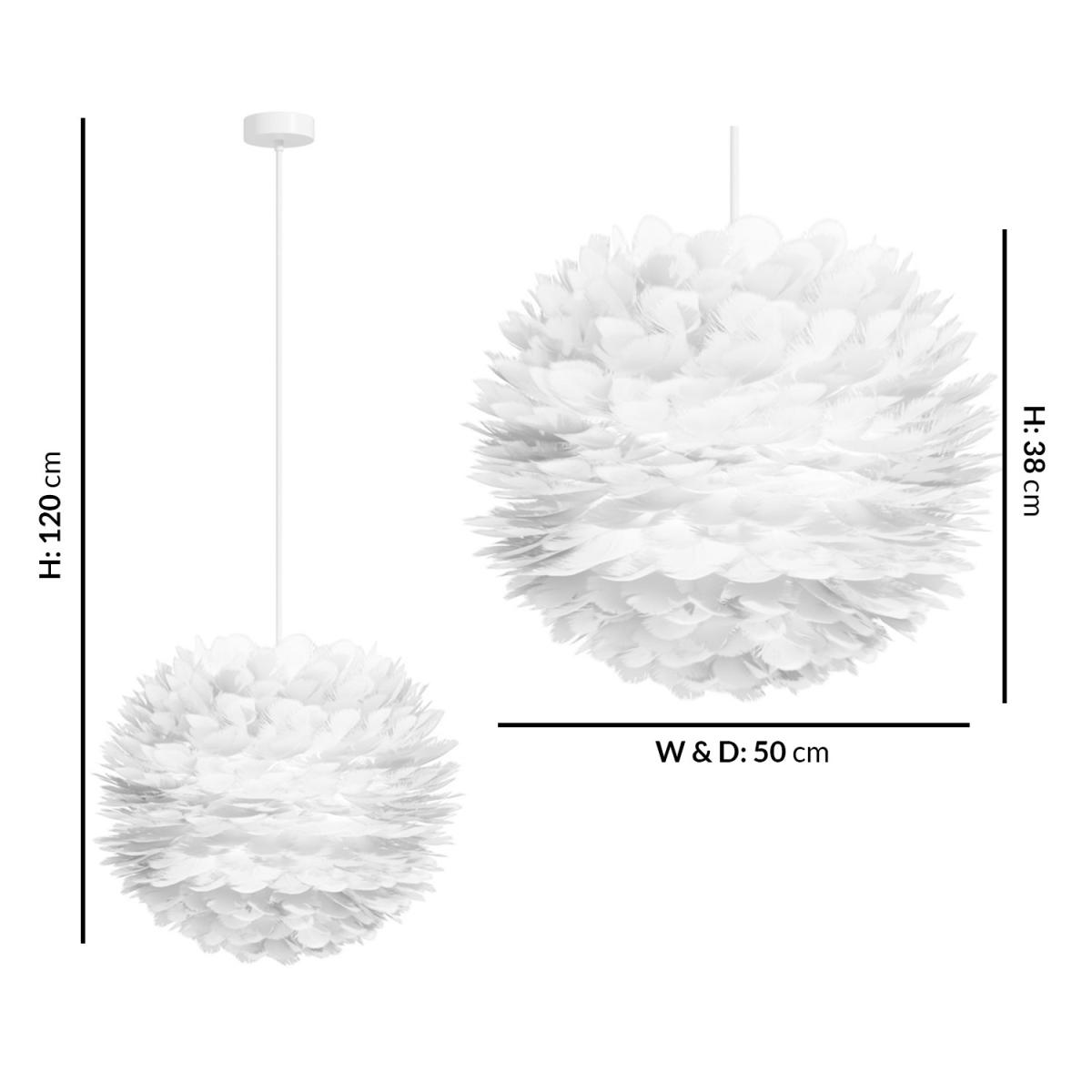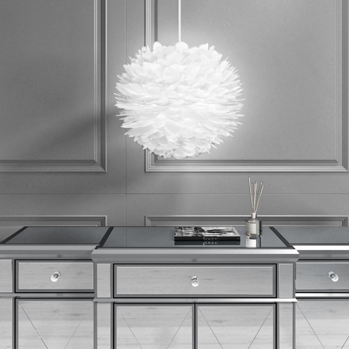 Handmade faux feather pendant light Crisp white feathers create a soft light Add a touch of glamour to any dining or living room E27 and LED bulb compatible, bulbs sold separately