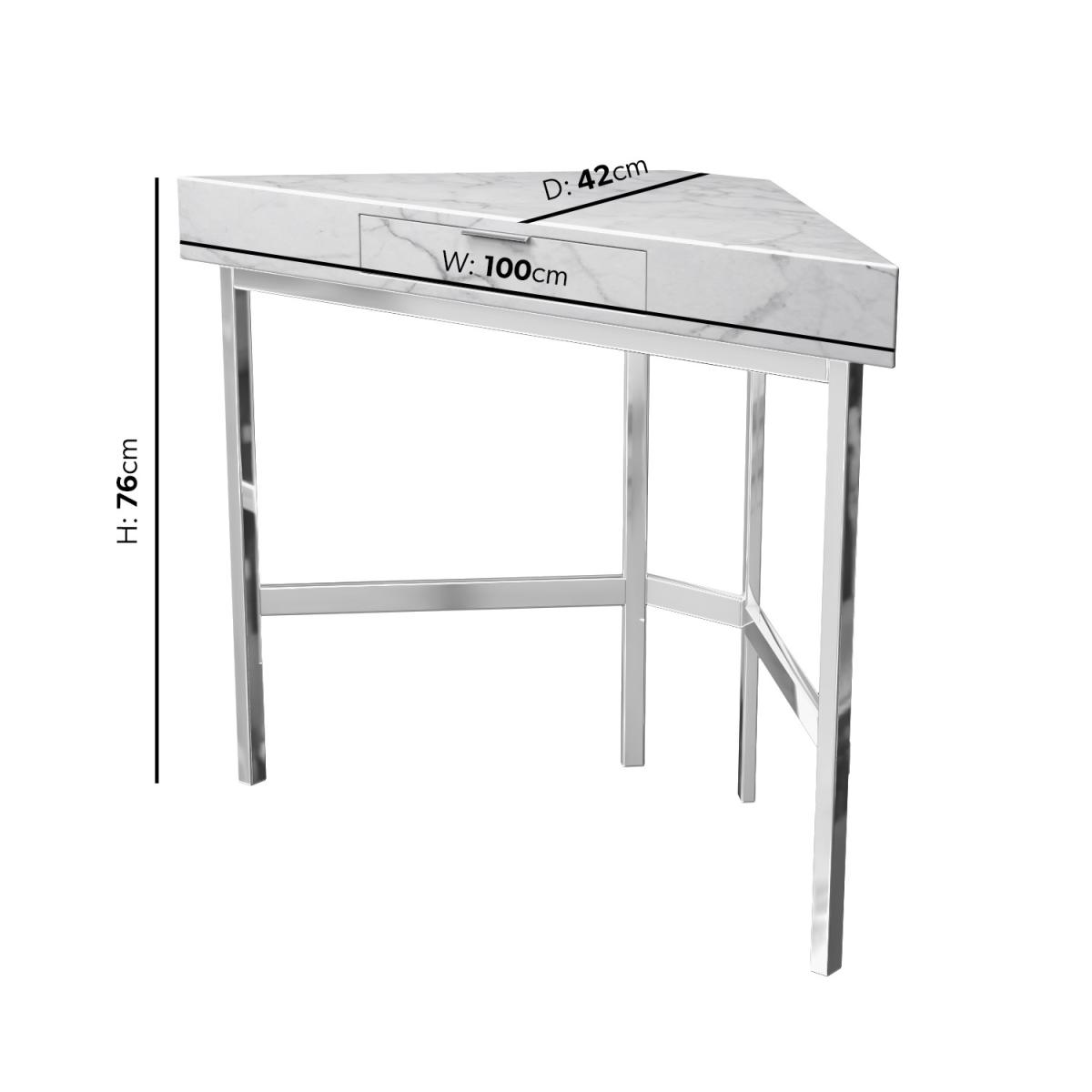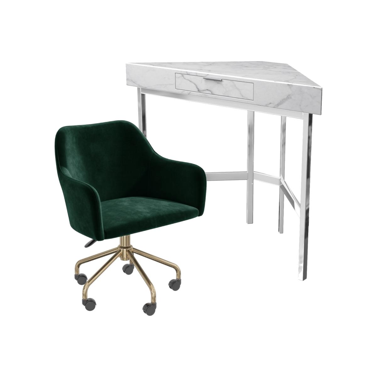 White Faux Marble Corner Desk & Green Velvet Office Chair - Roxy - Marley